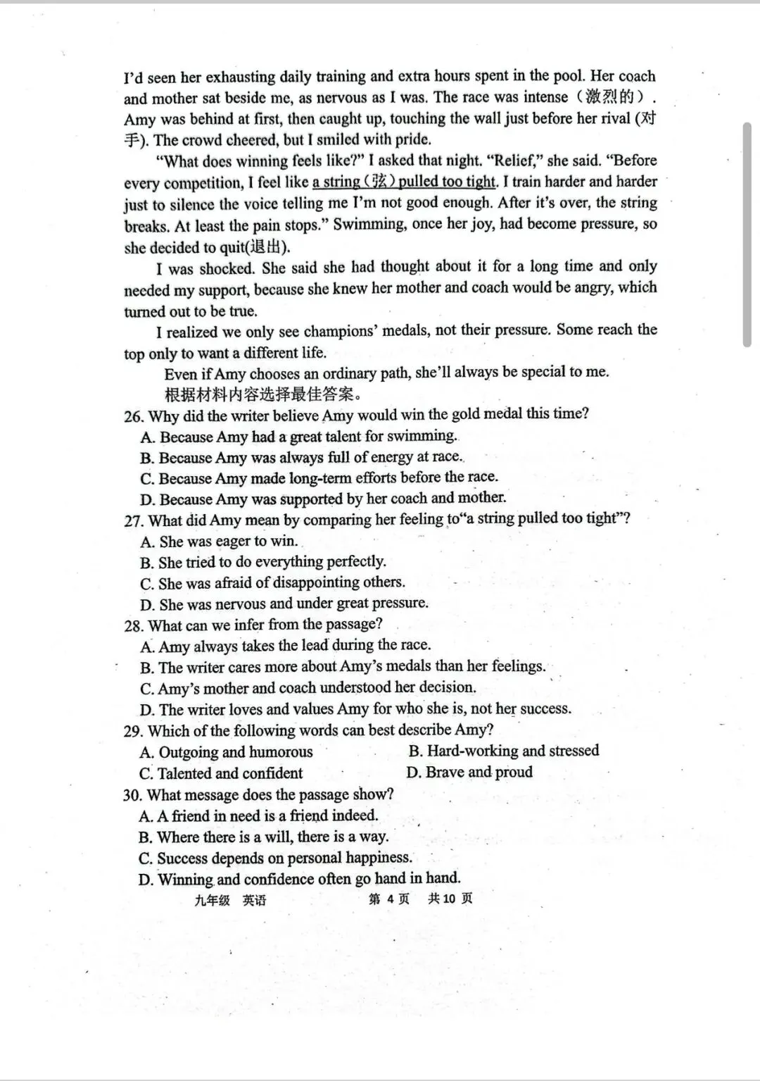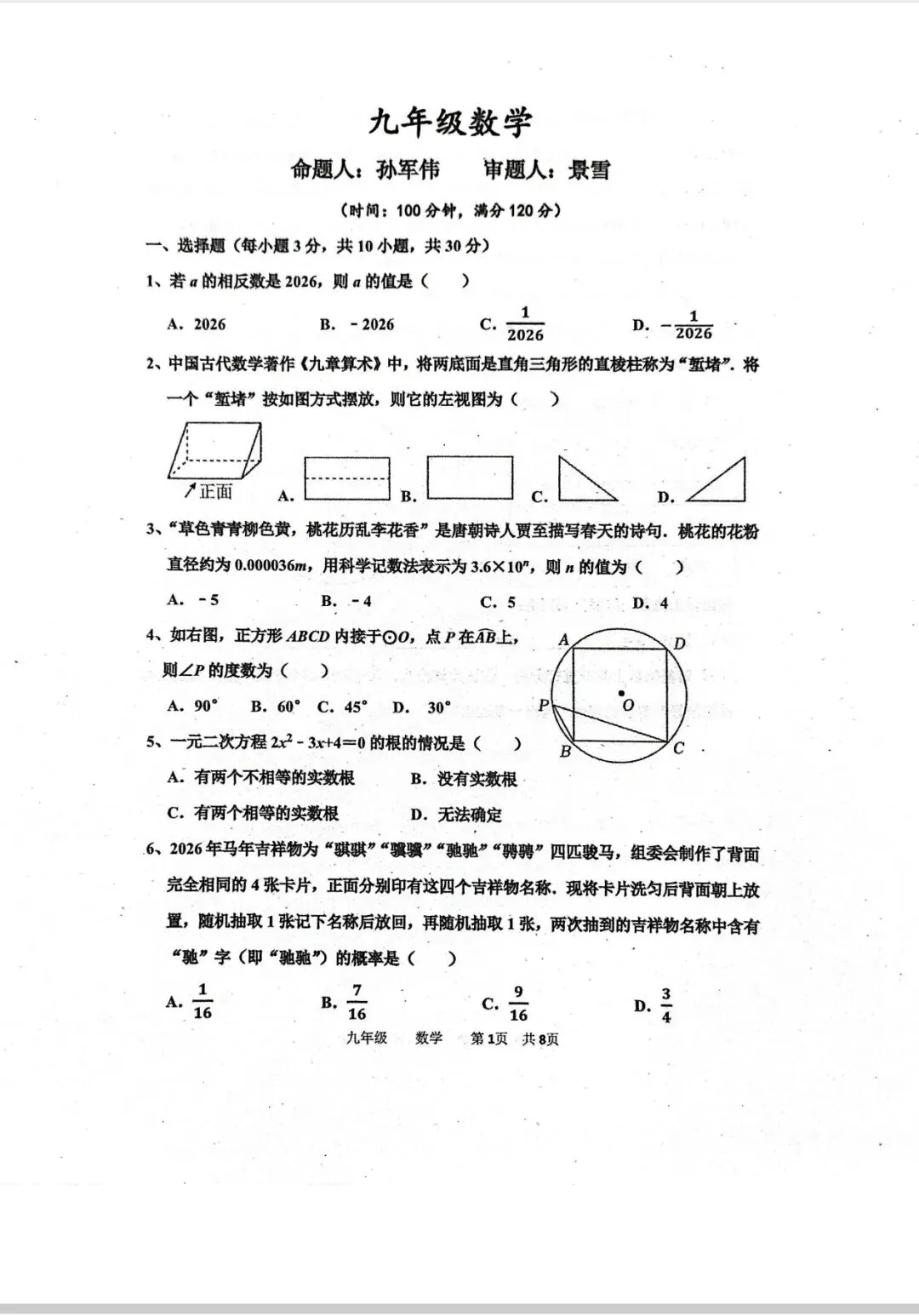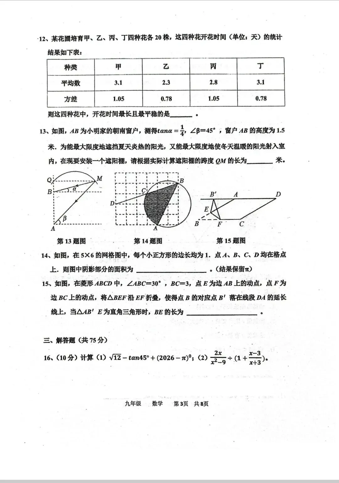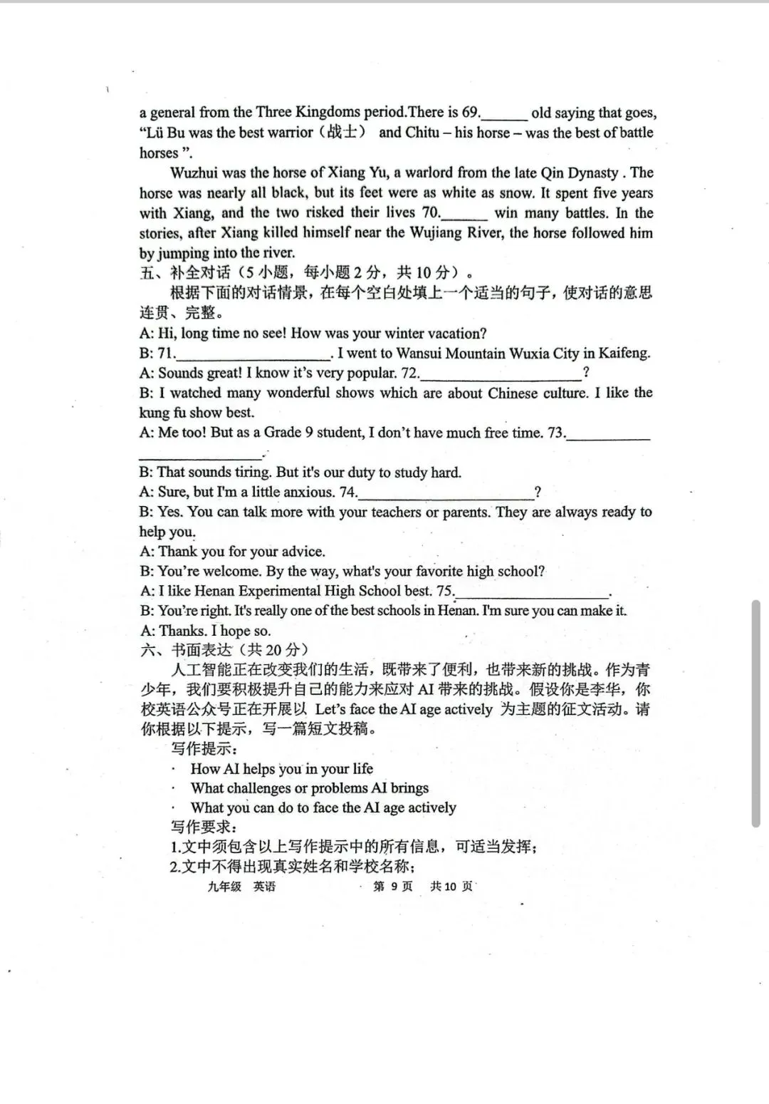 >省实验九下三月试卷