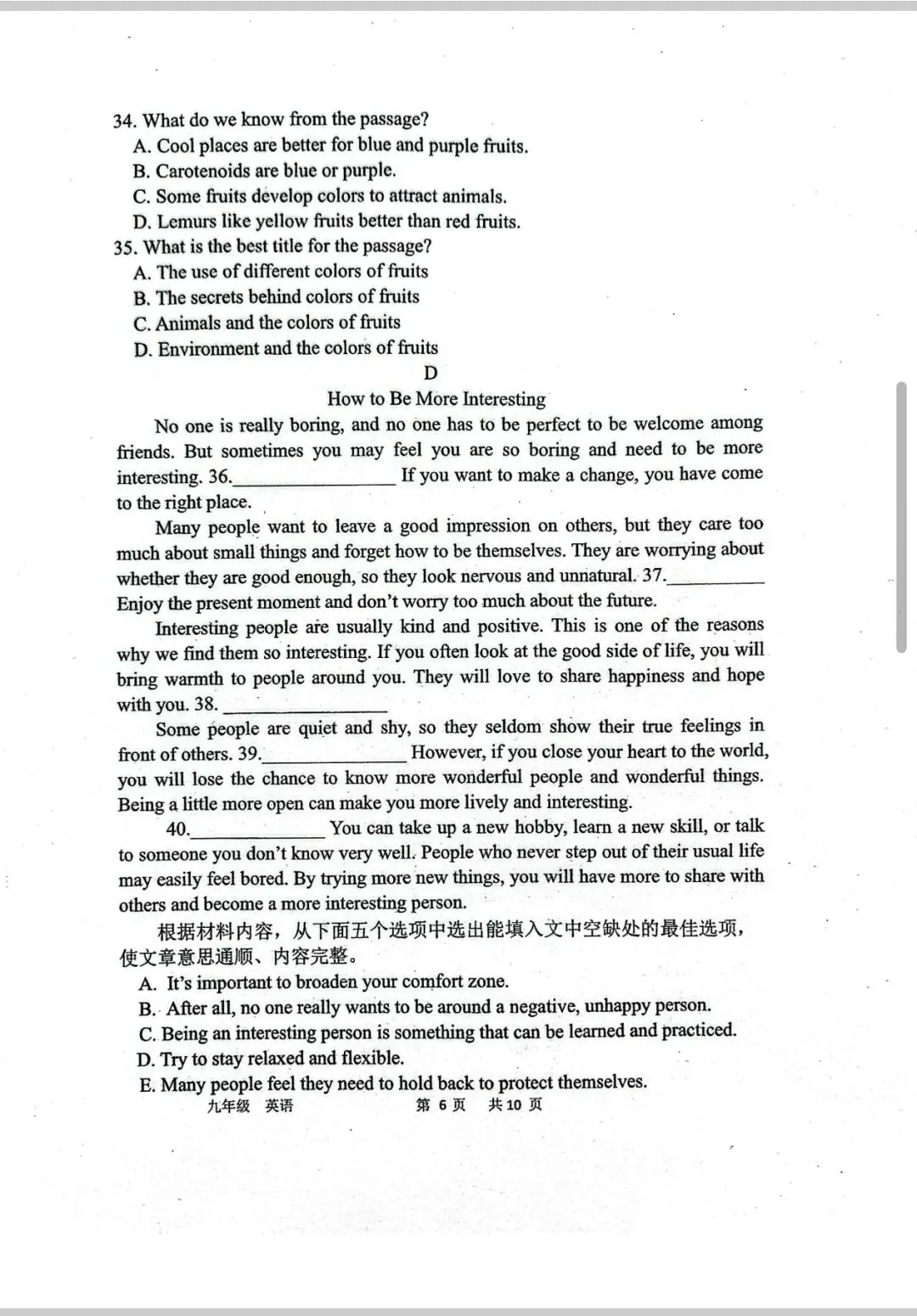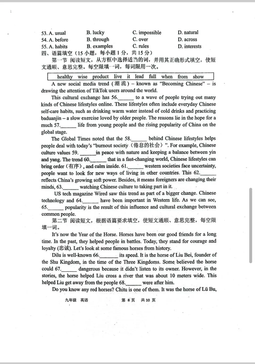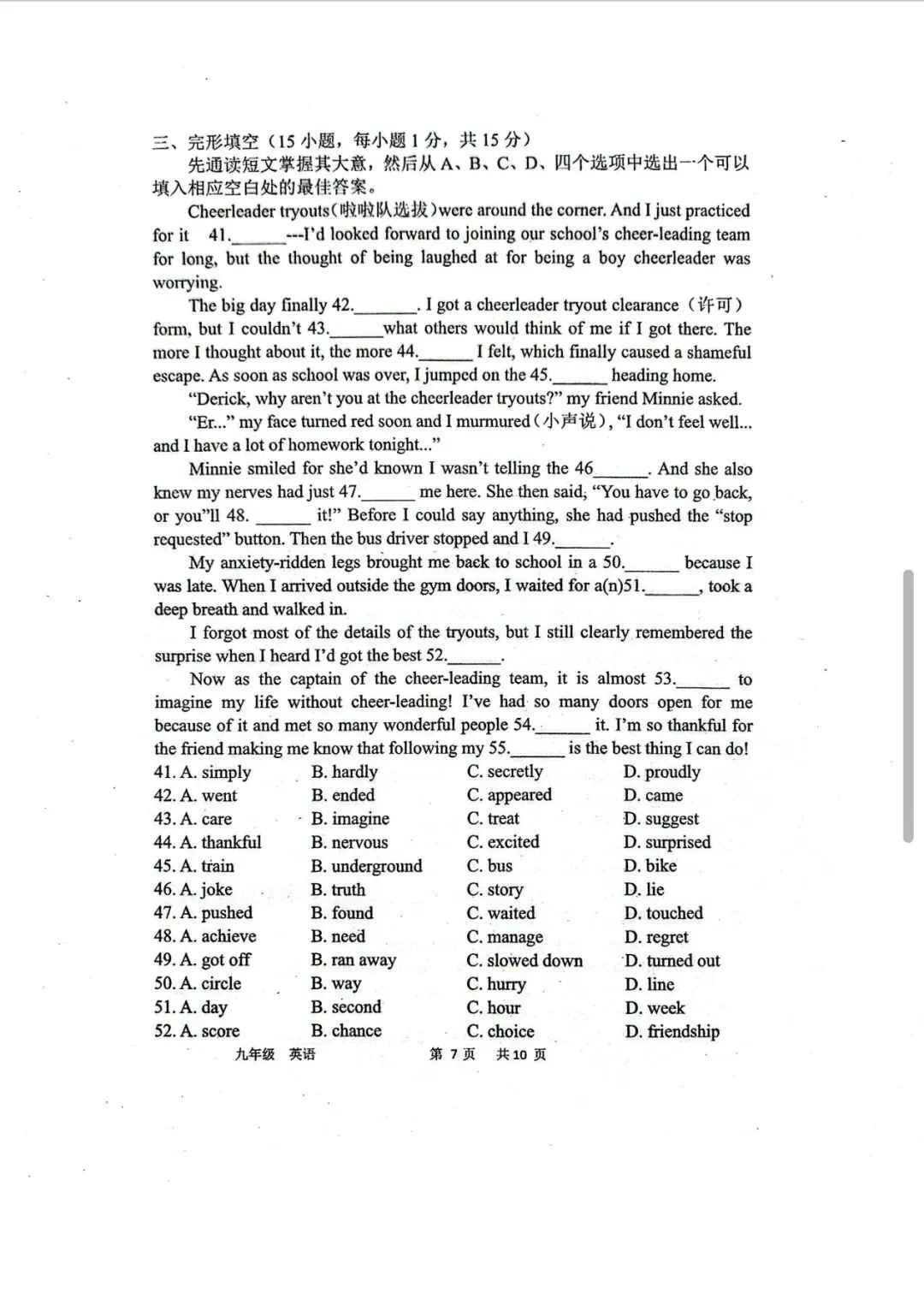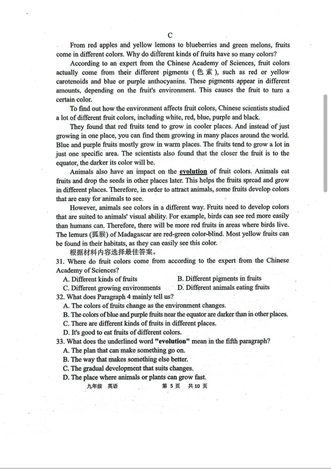 >省实验九下三月试卷