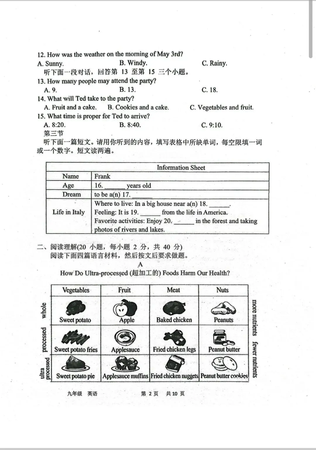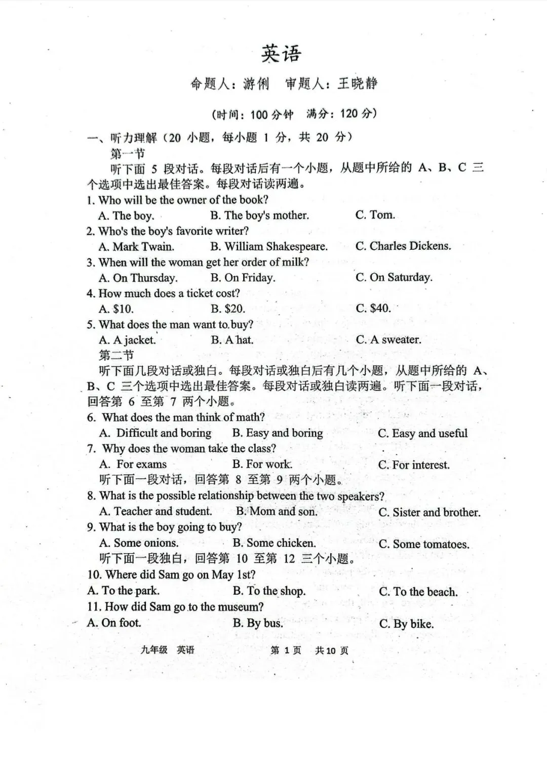 省实验九下三月试卷