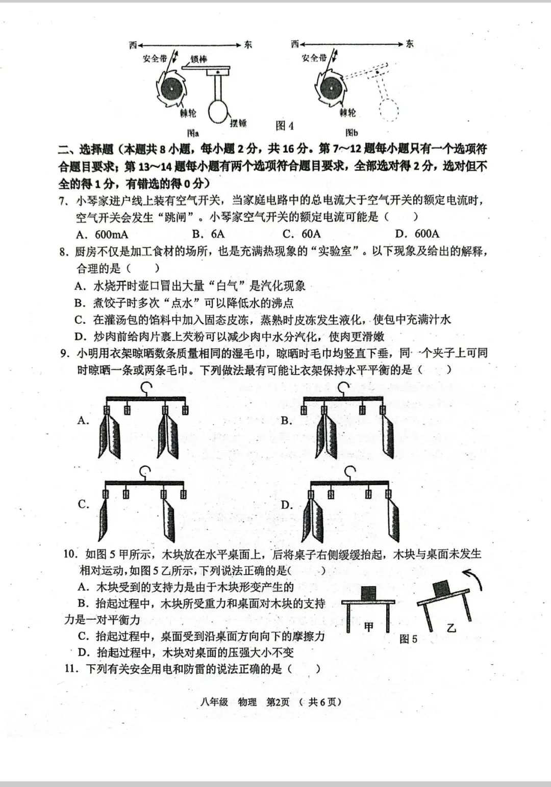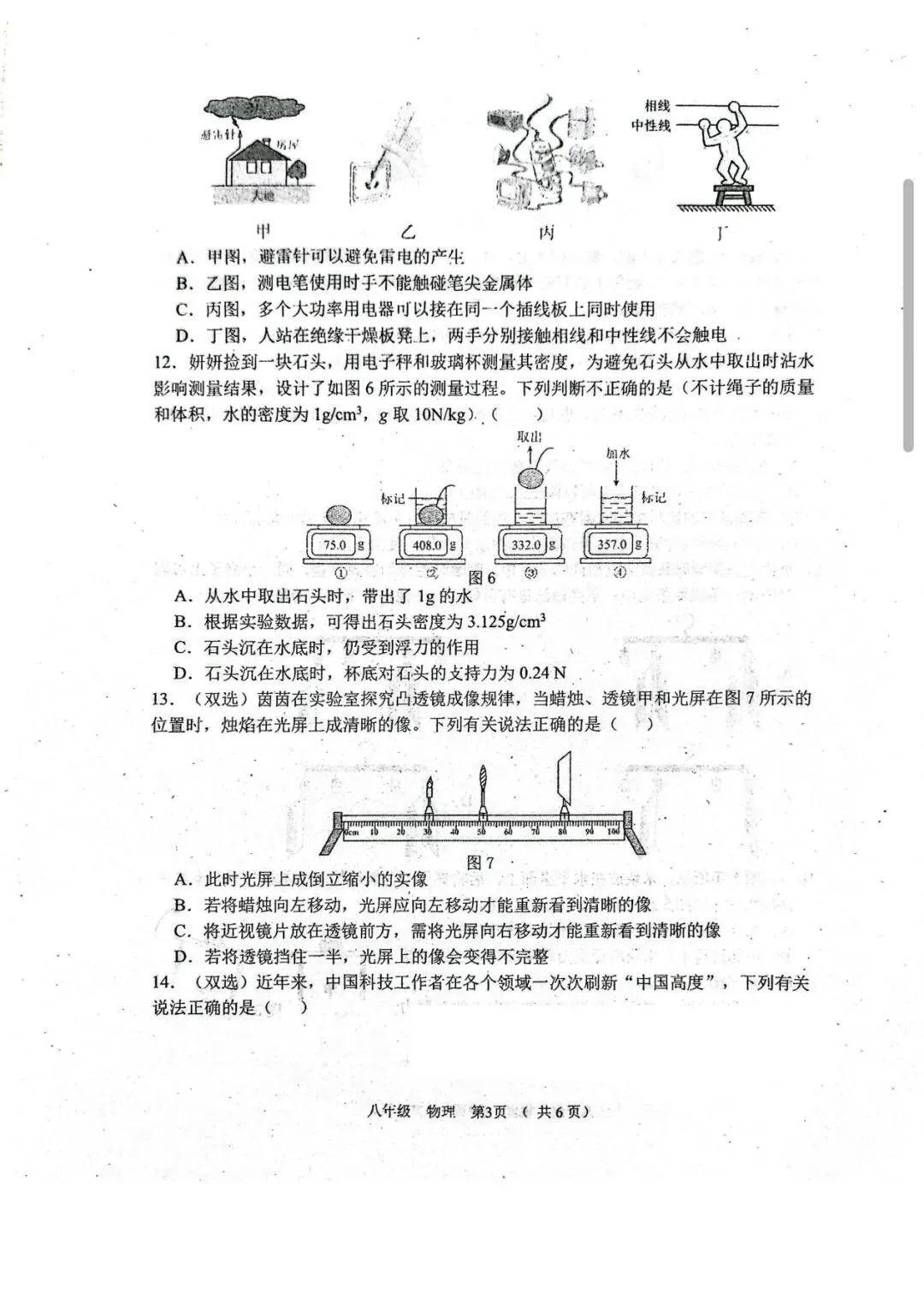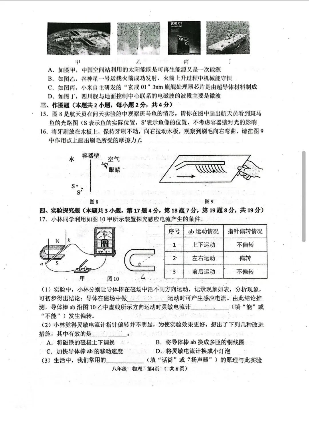 今年清远一模物理试卷,选择填空题超赞