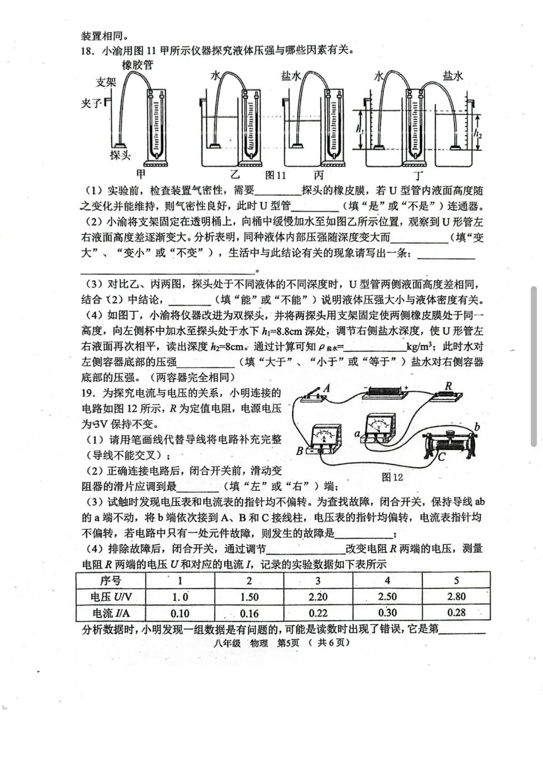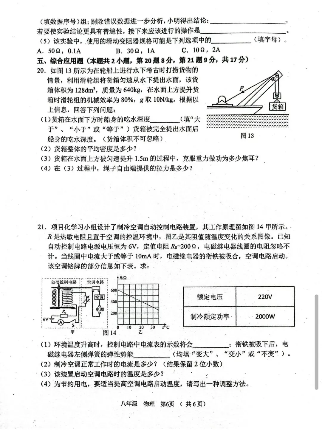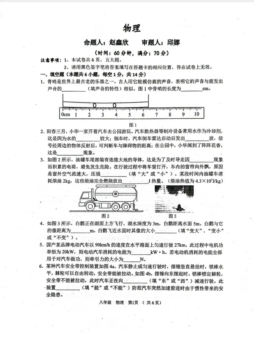 今年清远一模物理试卷,选择填空题超赞