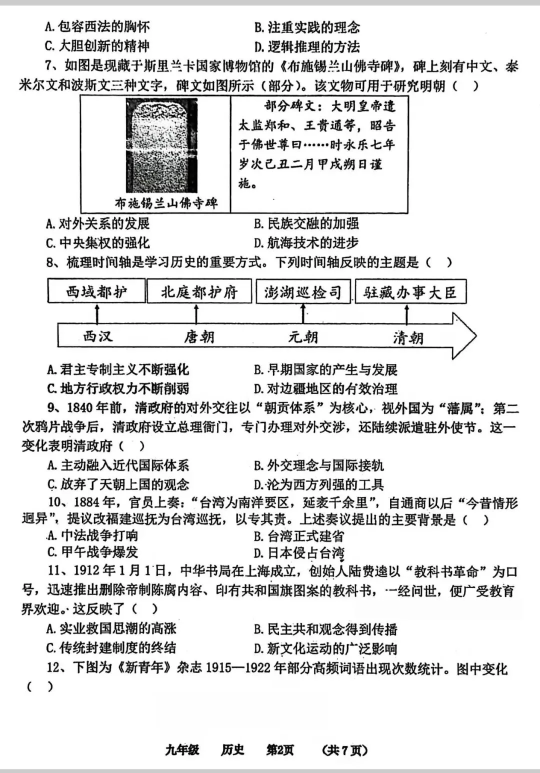 七年级期中试卷合集