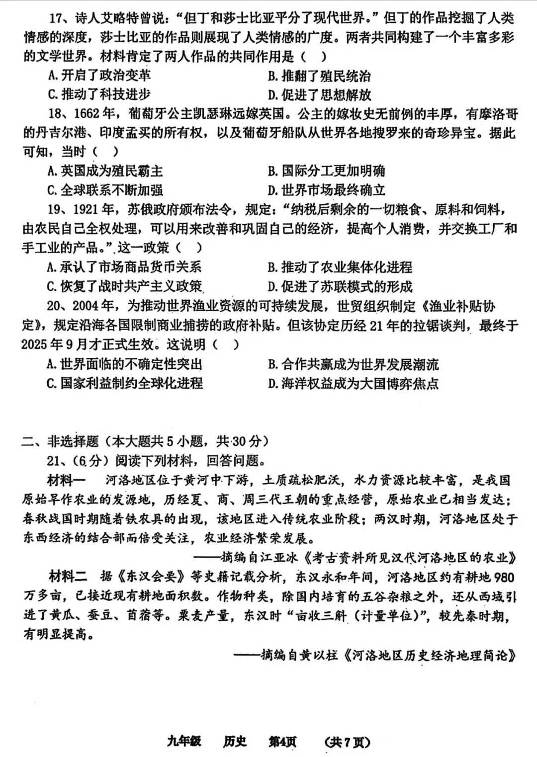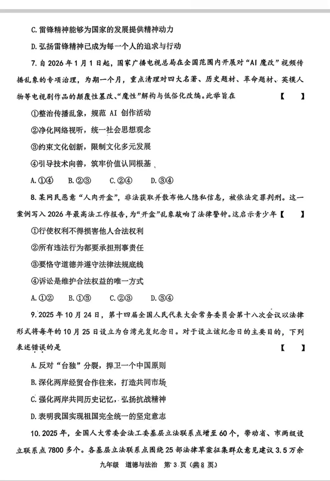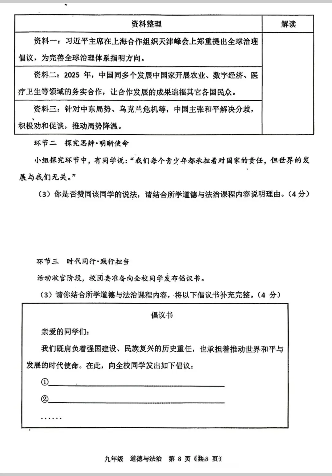 试卷资源||2026年青岛市北区八年级地理质量调研