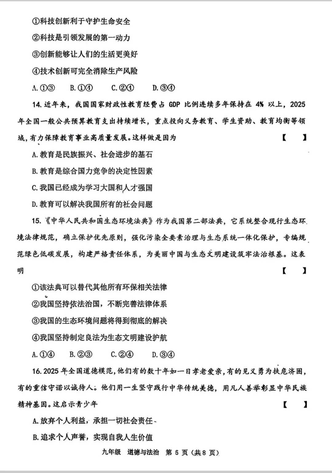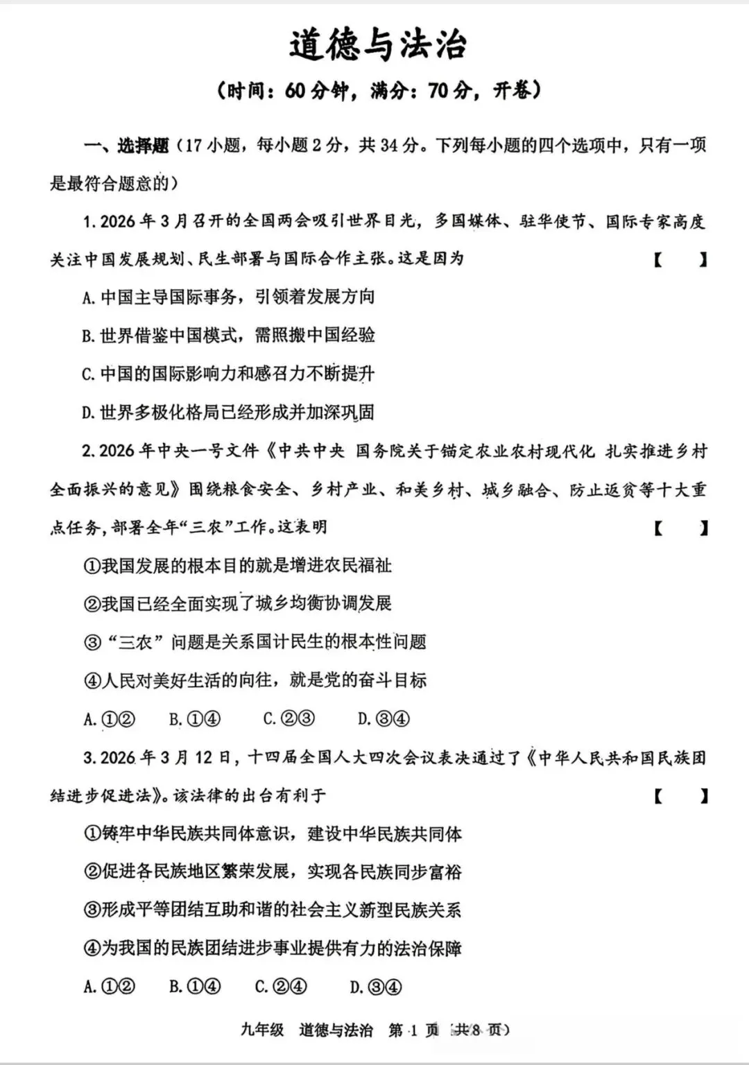 小升初道德与法治试卷