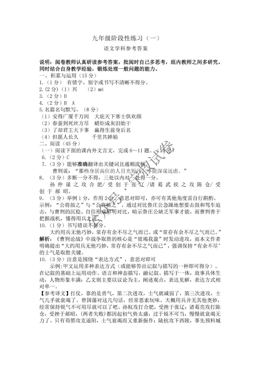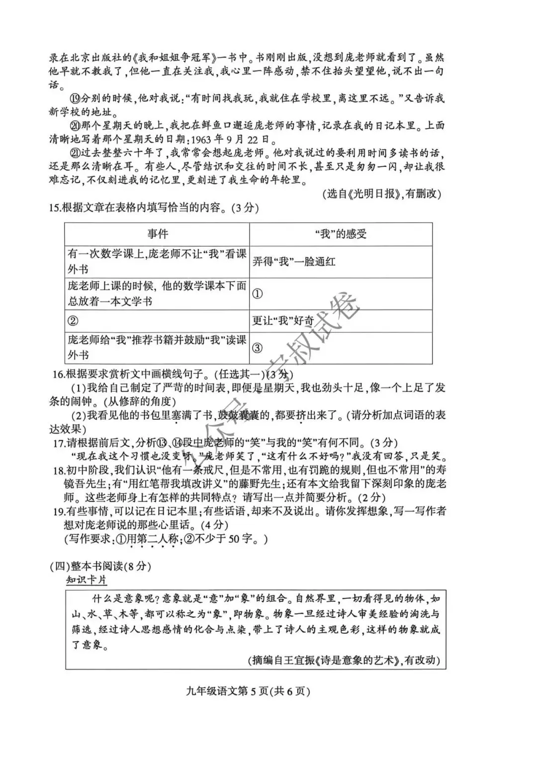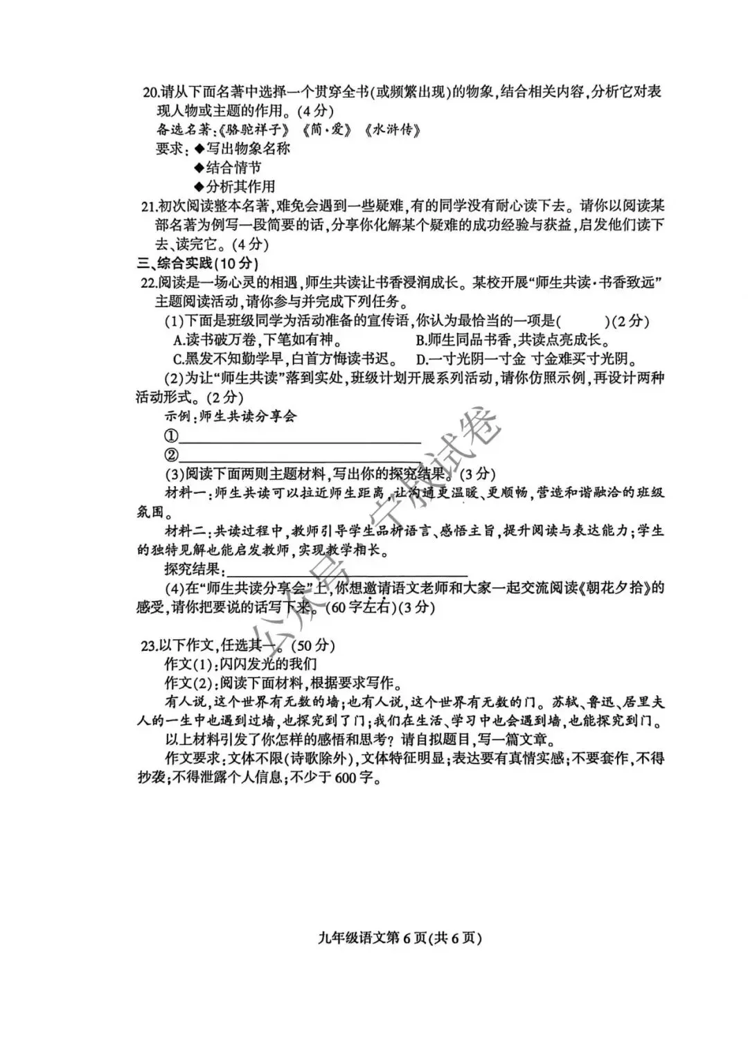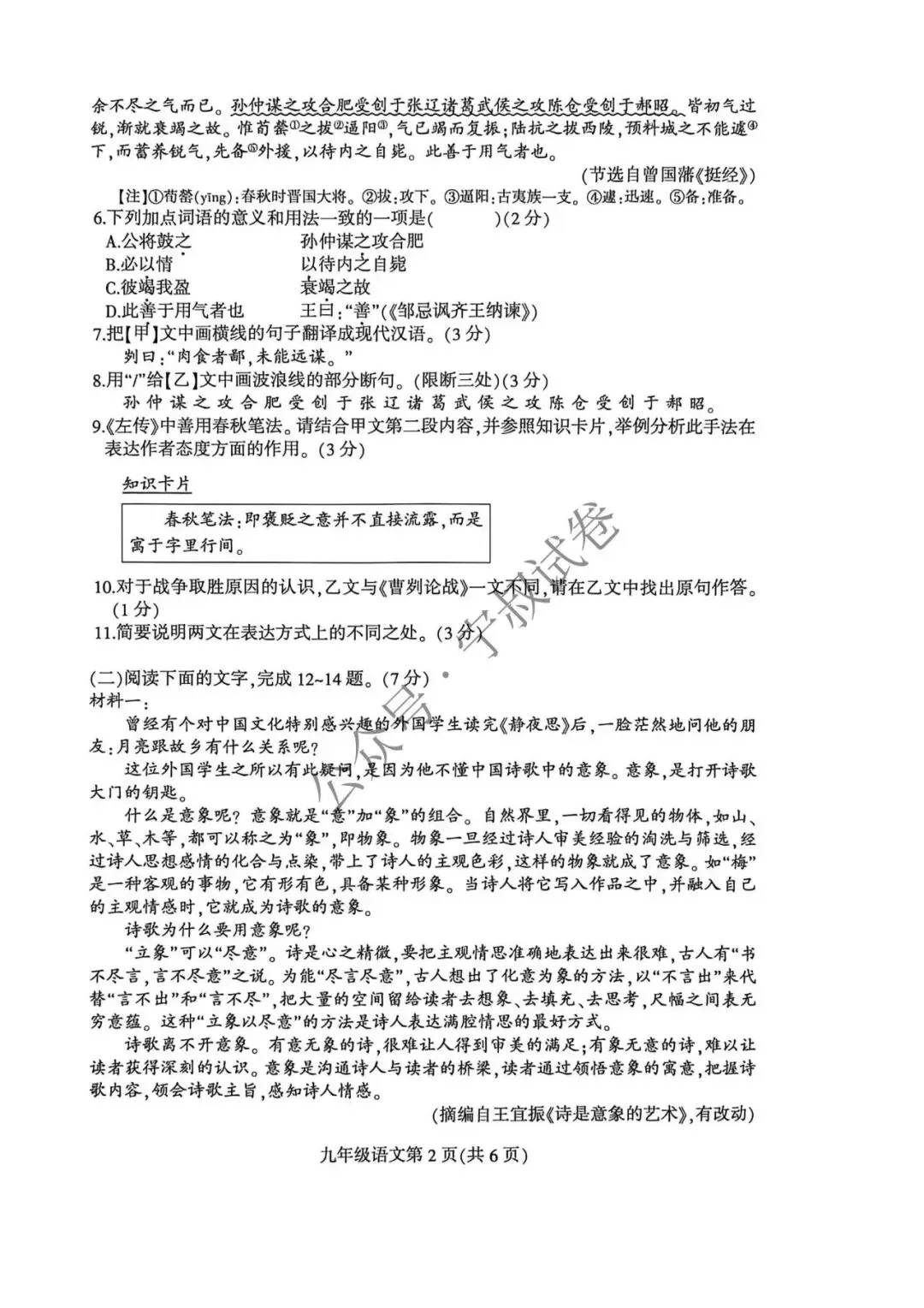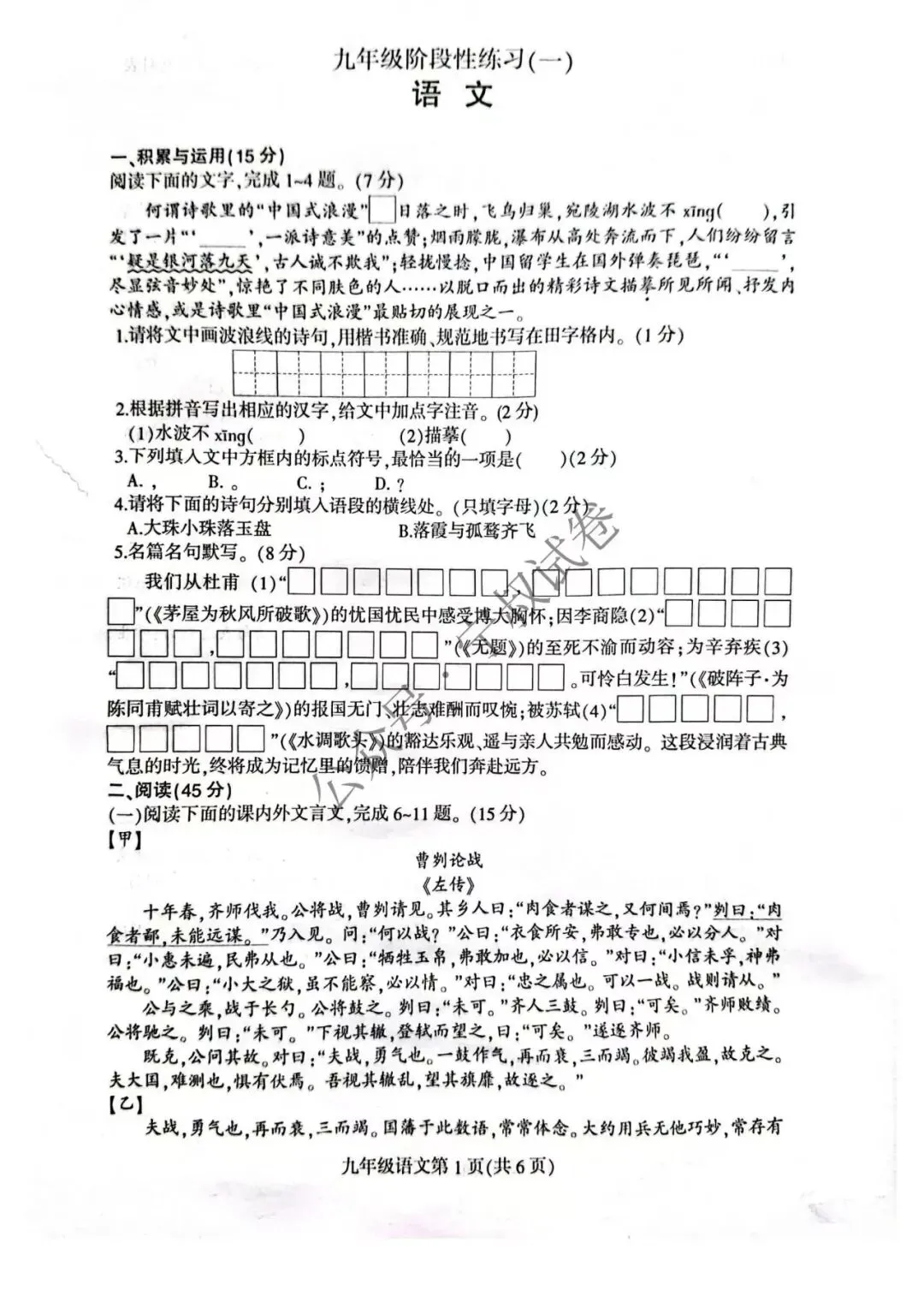 2026.4九年级阶段性练习语文试卷(含答案)