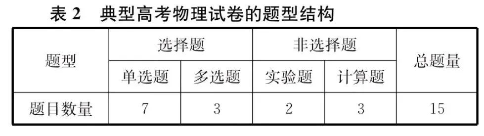 新高考2025年迎来了第五批改革“3+1+2”考试科目方案成了高考的主流方案,在这种方案下,全国大多数物理高考试卷的题型结构都是“10+5”,即10道选择题和5道非选择题,其中10道选择题由7道单选题和3道多选题组成,5道非选择题由2道实验题和3道计算题组成,如表2所示。