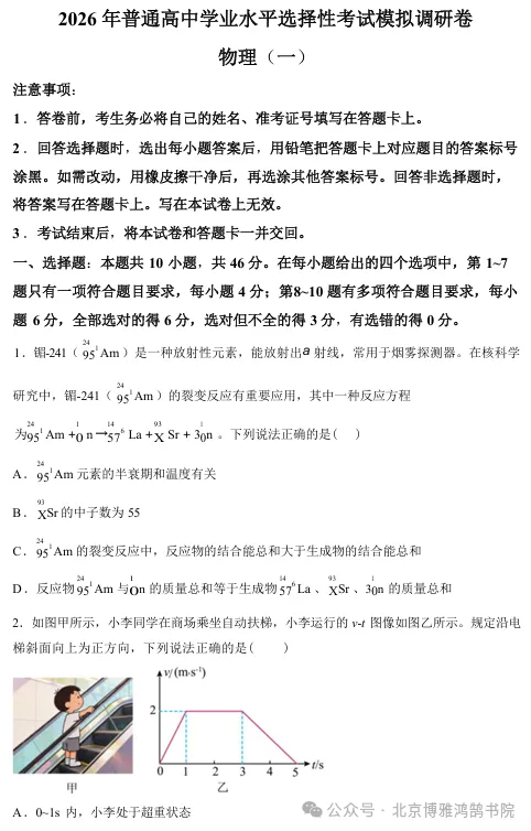 >辽宁省衡水金卷2026年高考一模物理试卷