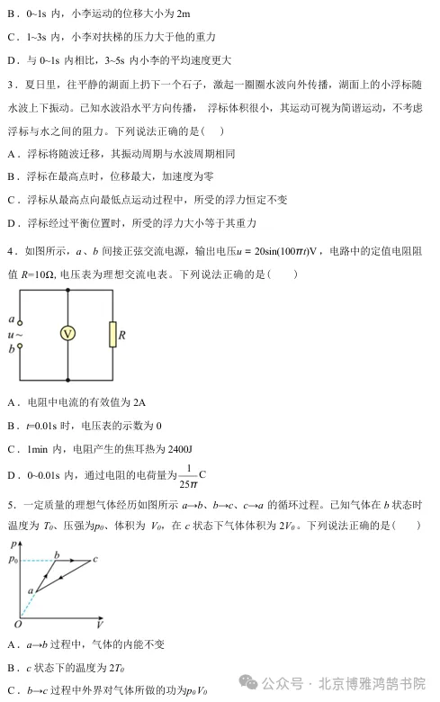 深圳试卷|2026(4月15)34校中考联考物理卷