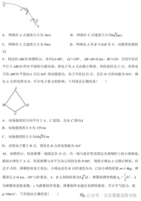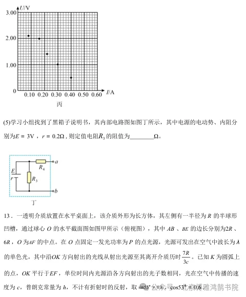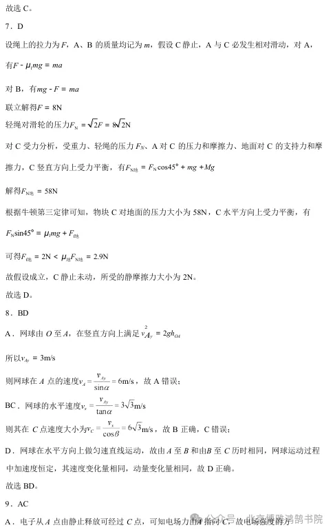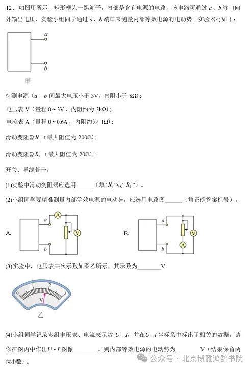 今年清远一模物理试卷,选择填空题超赞