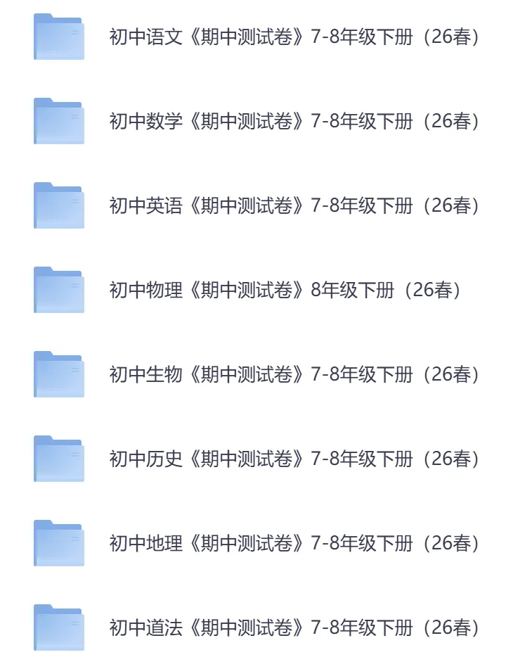 初中全科目《期中测试卷》7-8年级下册(可下载打印)语文/数学/英语/物理/地理/生物/历史/道法2026春最新版