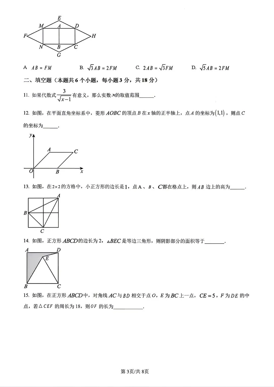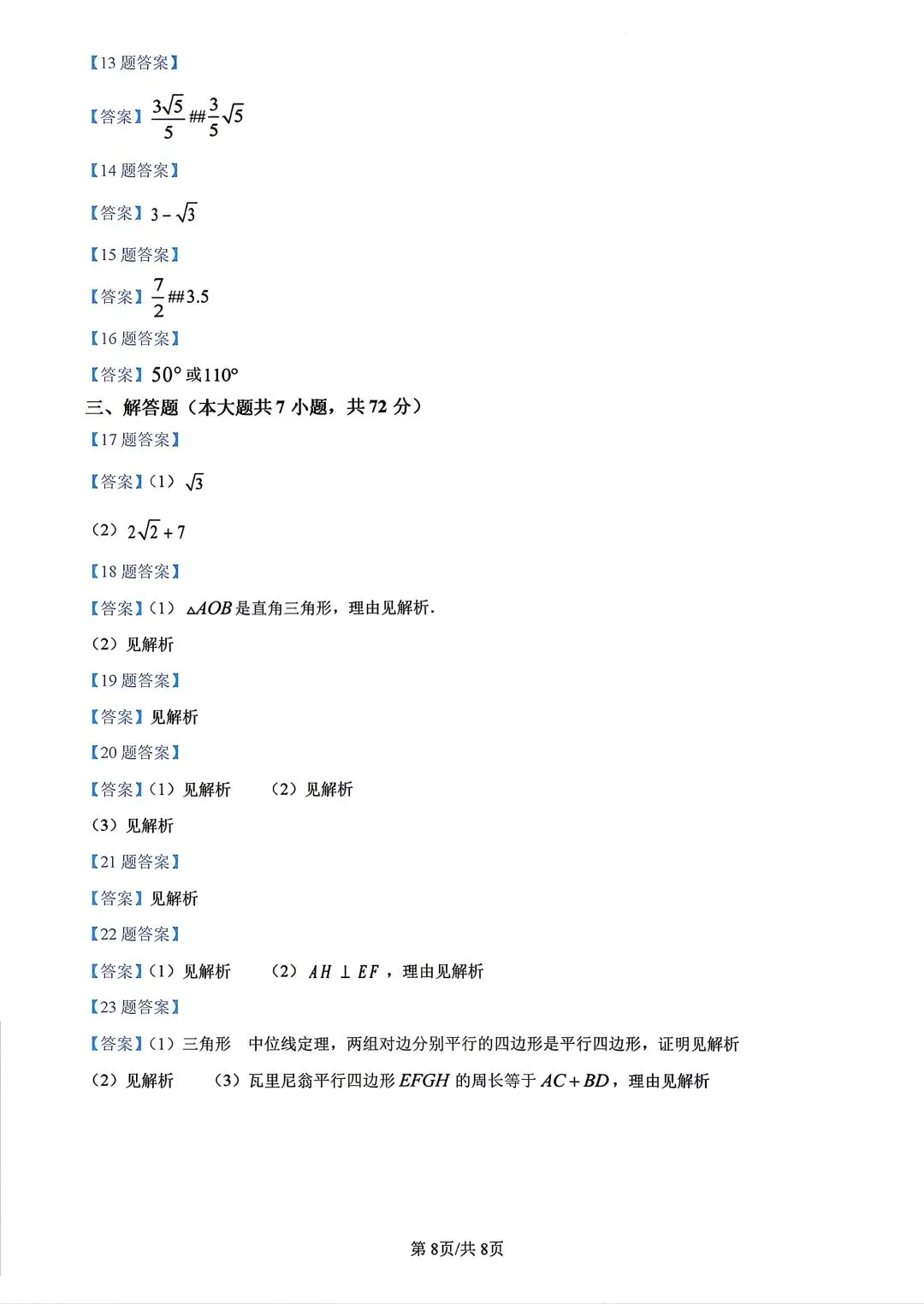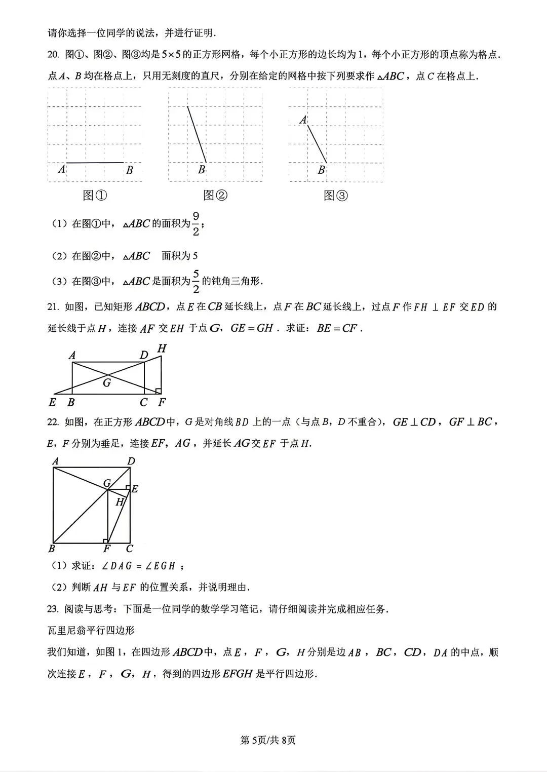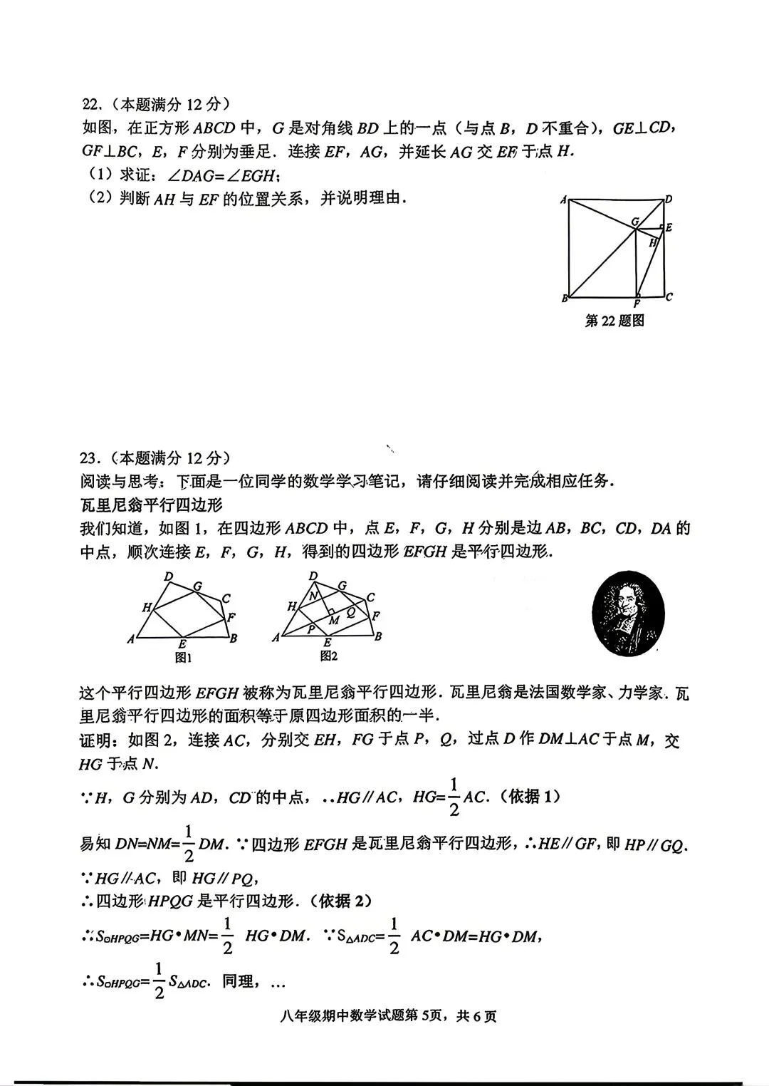 >2023-2024 罗庄区八下数学期中试卷附答案
