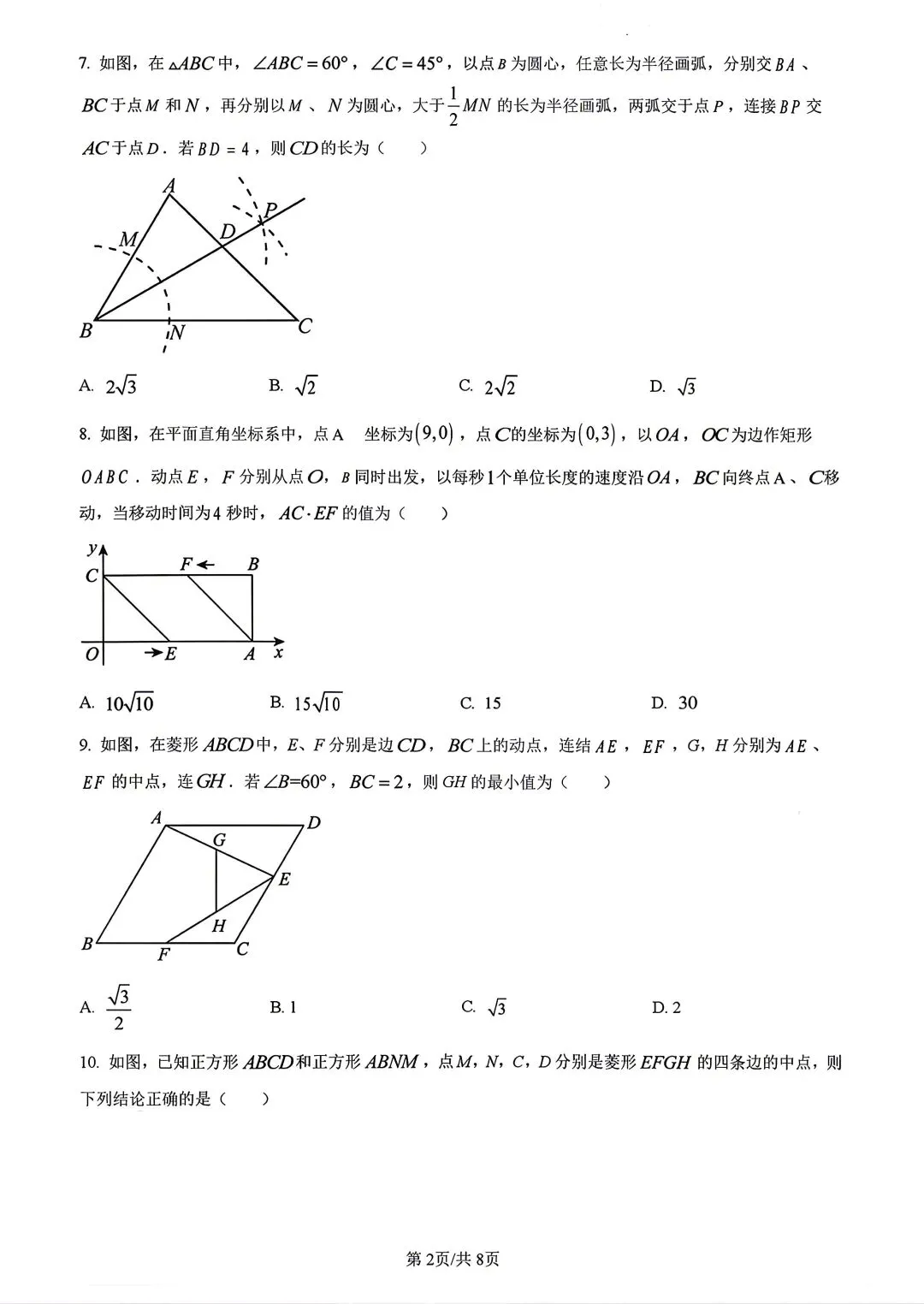 【中考二模试卷】2025年河南省郑州市中招二模试卷(七科含答案)