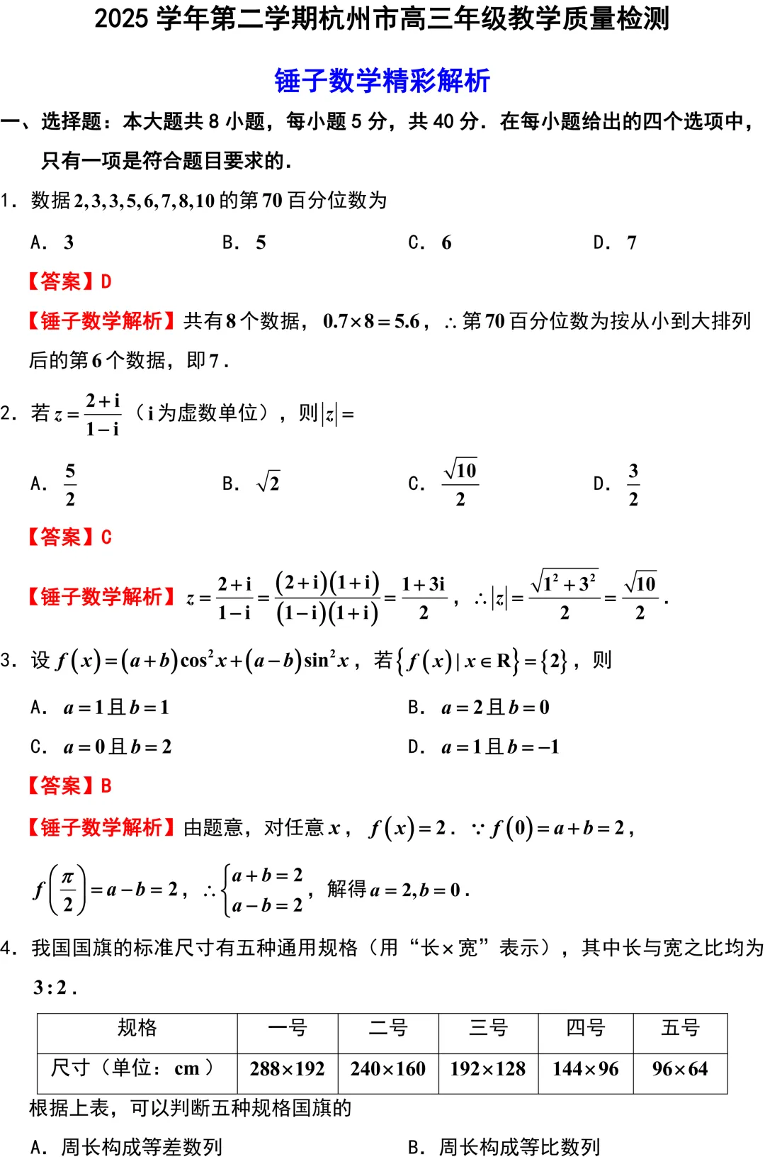 >2026届高三数学浙江省杭州二模考试卷解析版