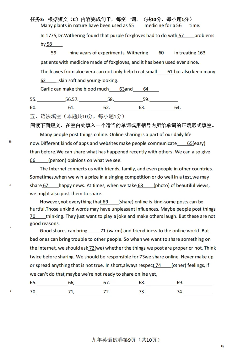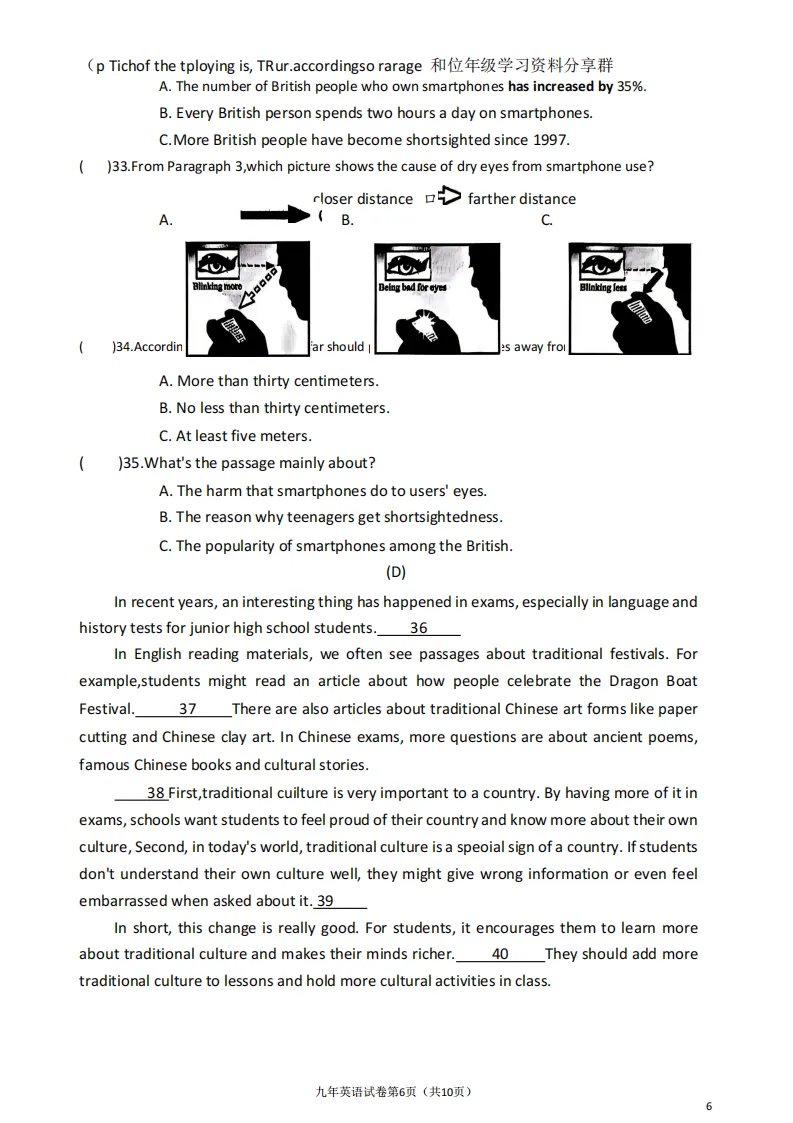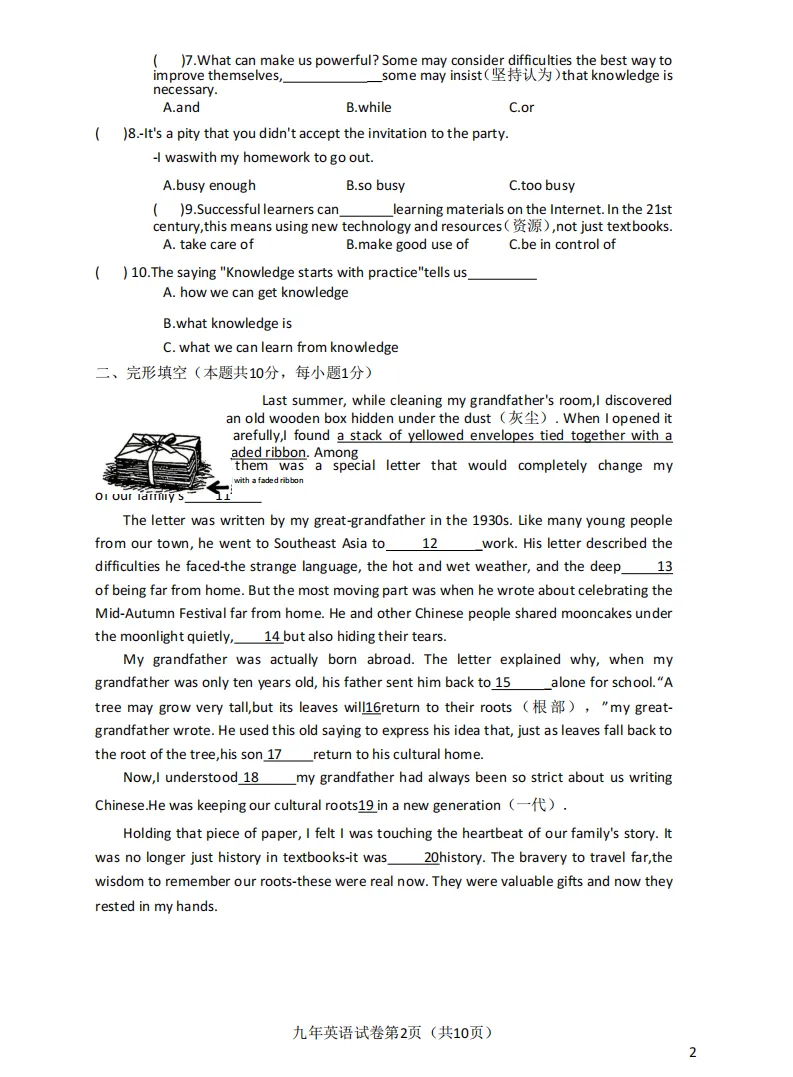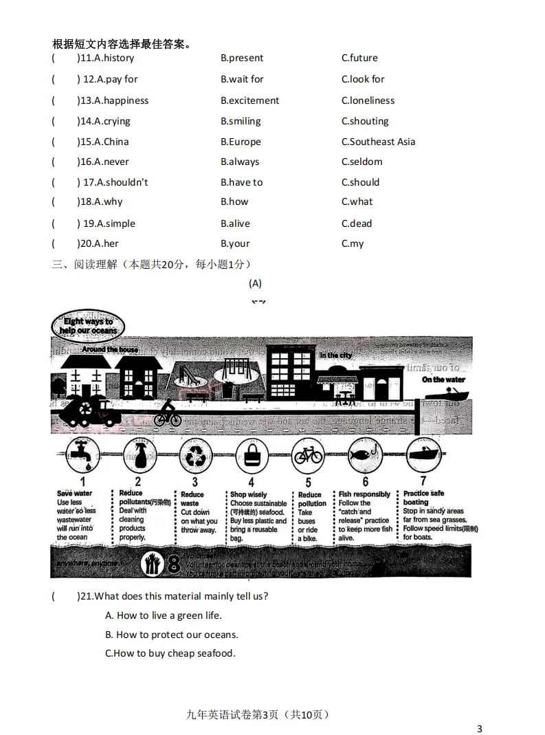>2026哈尔滨道外区九年级下英语一模 试卷+答案