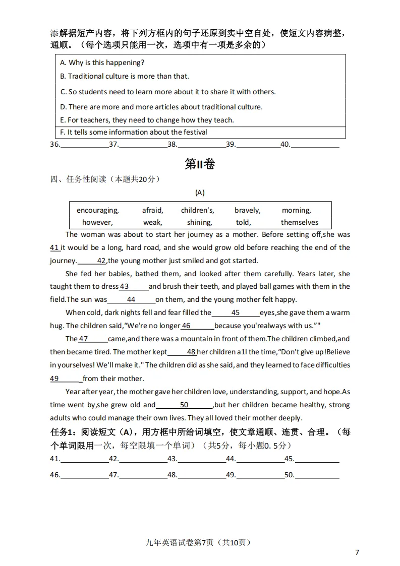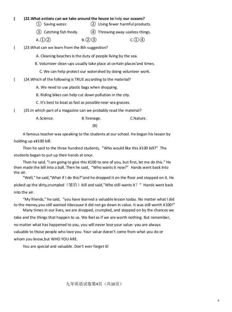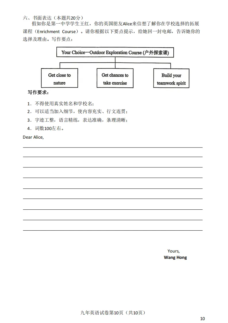 2026哈尔滨道外区九年级下英语一模 试卷+答案