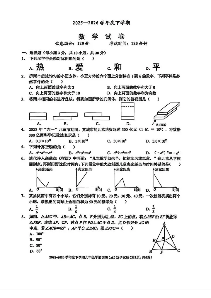 当前位置:首页>考研真题>武汉外校2026九下3月考数学试卷含答案