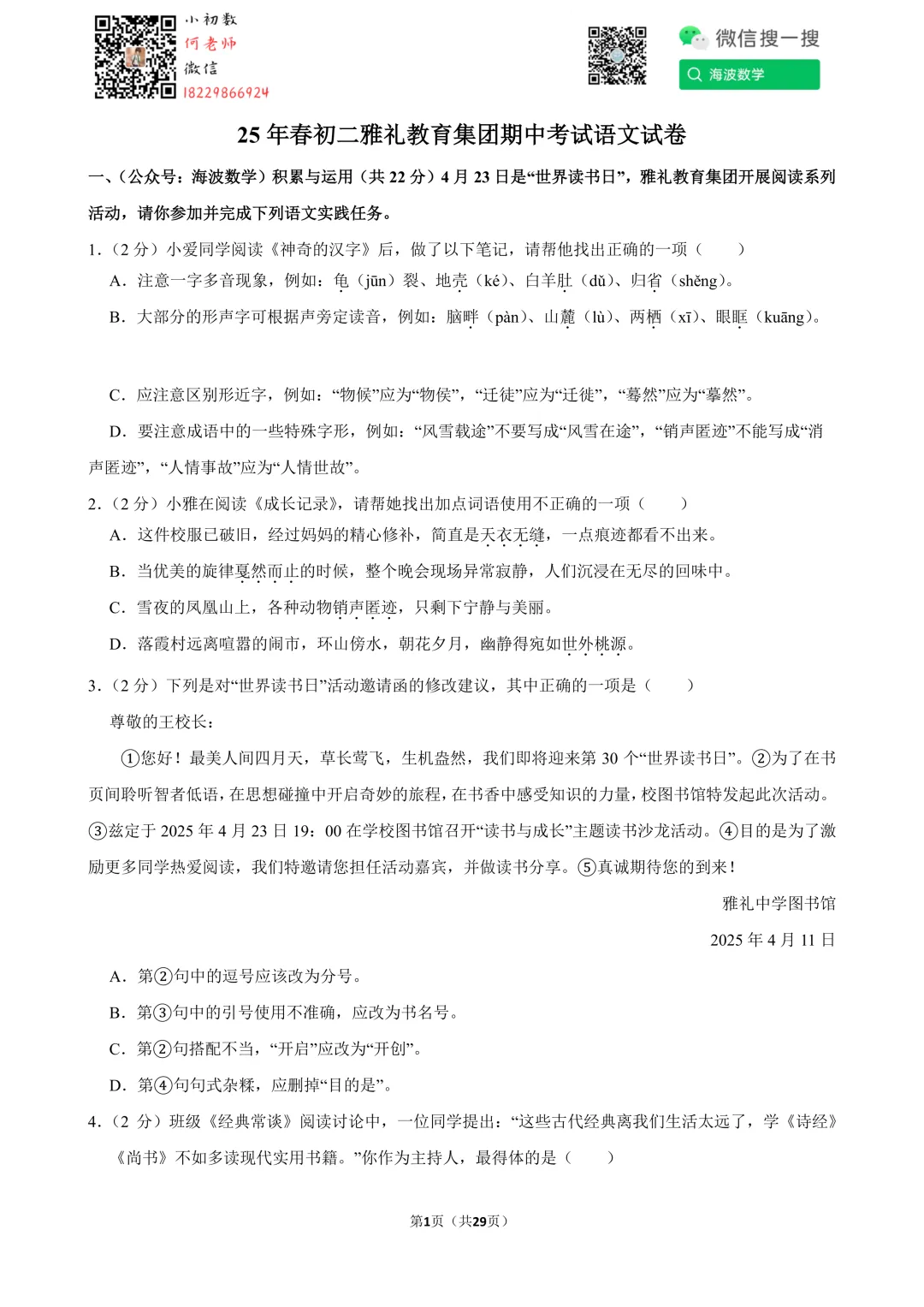 当前位置:首页>考研真题>25年春初二雅礼教育集团期中考试语文试卷