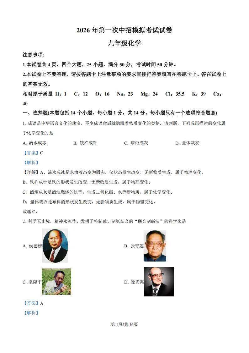| 因篇幅有限,仅展示X化学X试卷及答案,完整版往下看⬇️ | ||