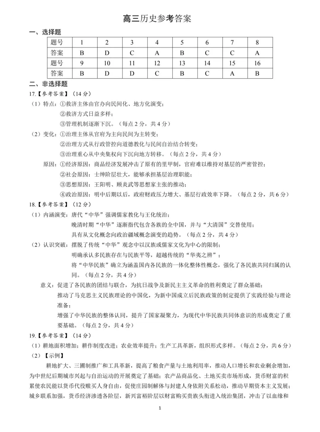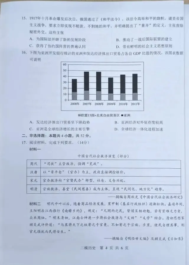 上饶市2026届高三年级二模历史试卷与参考答案