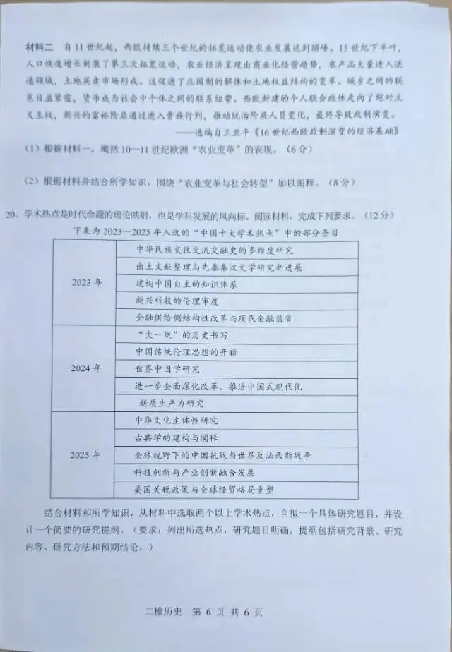 >上饶市2026届高三年级二模历史试卷与参考答案