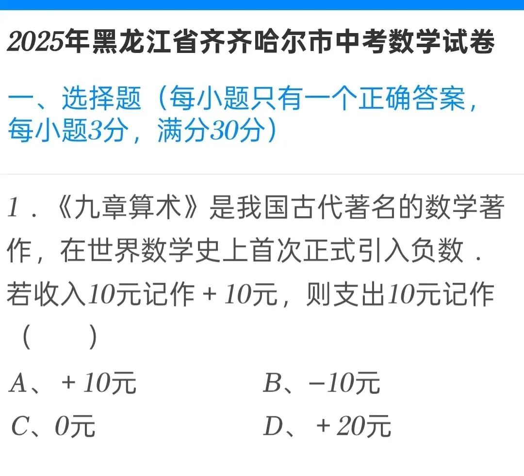 2025黑龙江省齐齐哈尔市中考数学试卷