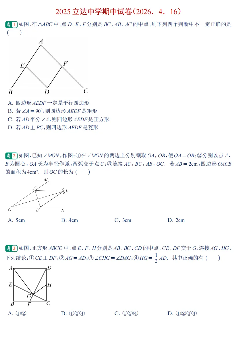 继续开启刷试卷:【每天一套卷】--初二期中刷试卷!!!(第19天)也快要期中考试了,本周开始推送往年期中试卷真题进行练习,加油!同时,为方便与大家交流和资料分享,特建立初二学习交流群,每周都会有资料和学习方法的分享,可扫码添加小编微信邀请进群!(2026.4.16)2025立达中学期中试卷-精选.pdf