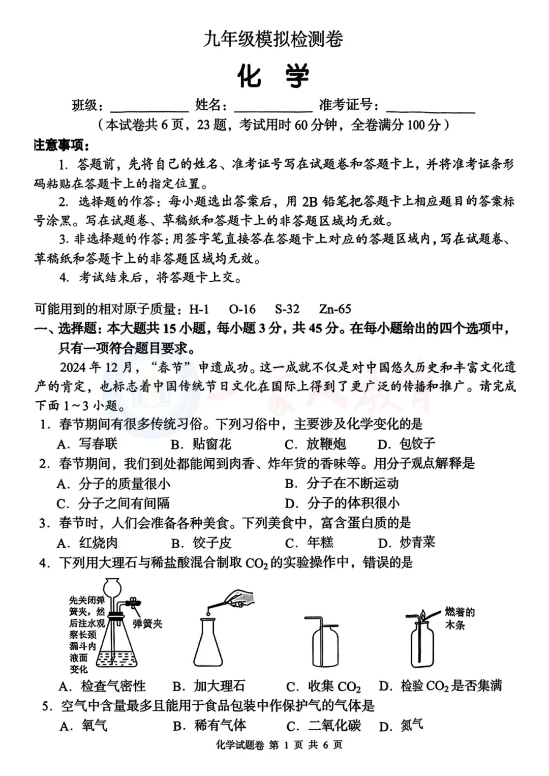 >衡阳初三一模试卷分享!25年衡阳初三一模考试卷免费领