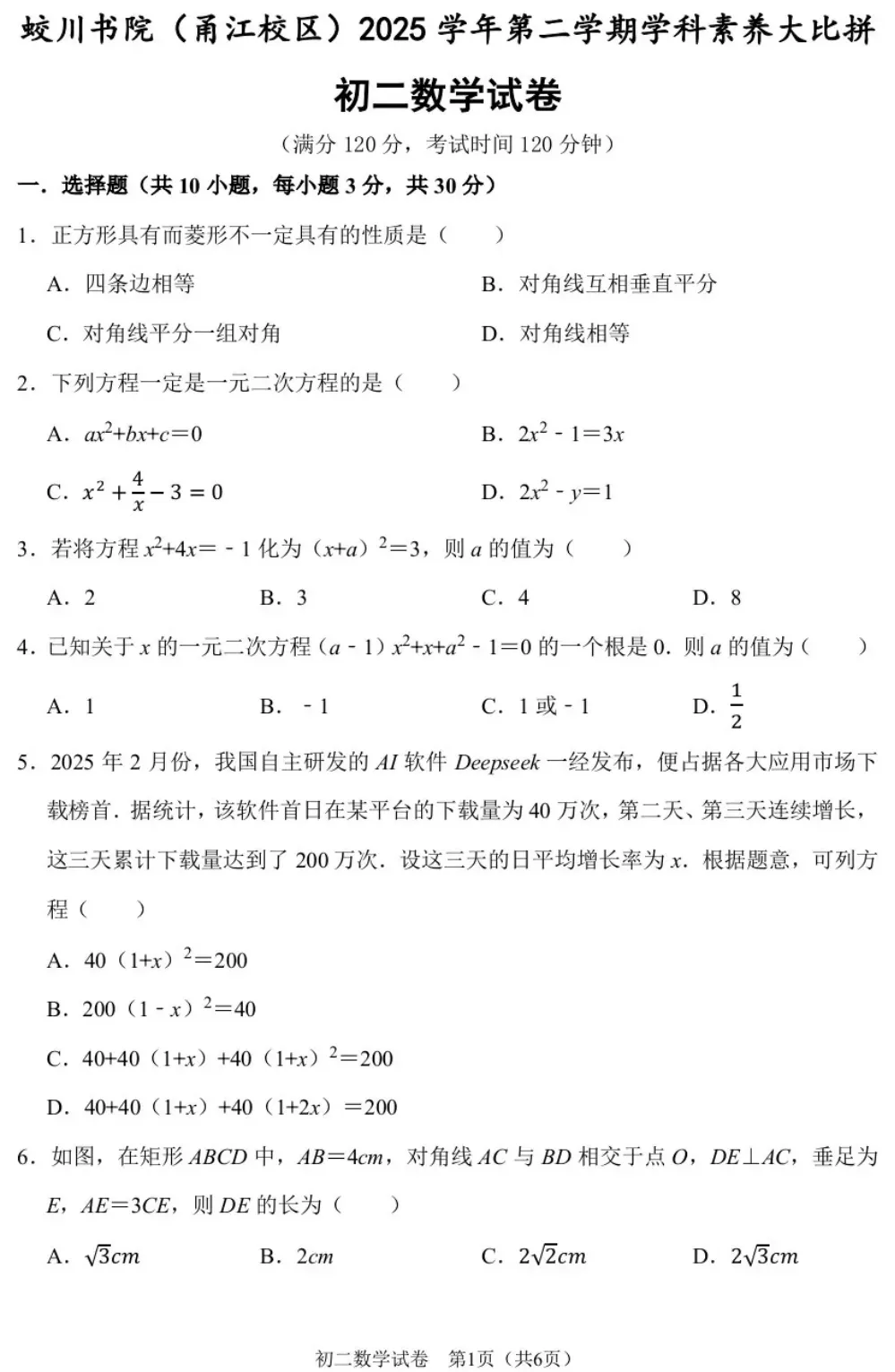 宁波市蛟川书院八下学科大比拼数学试卷(2026.4).pdf