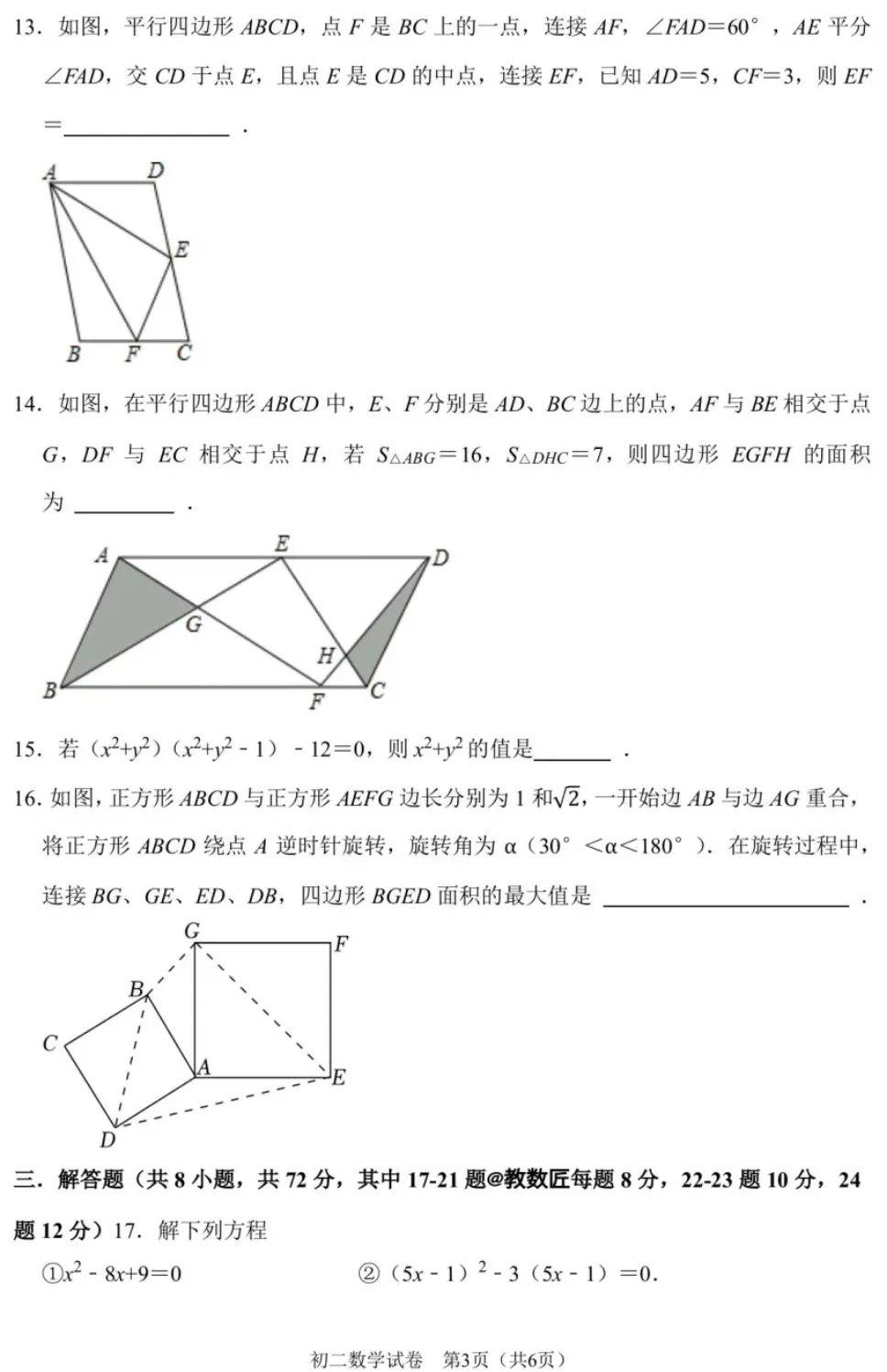 【2026浙江八下数学培优试卷】嘉兴市八下数学培优试卷(2026.3)