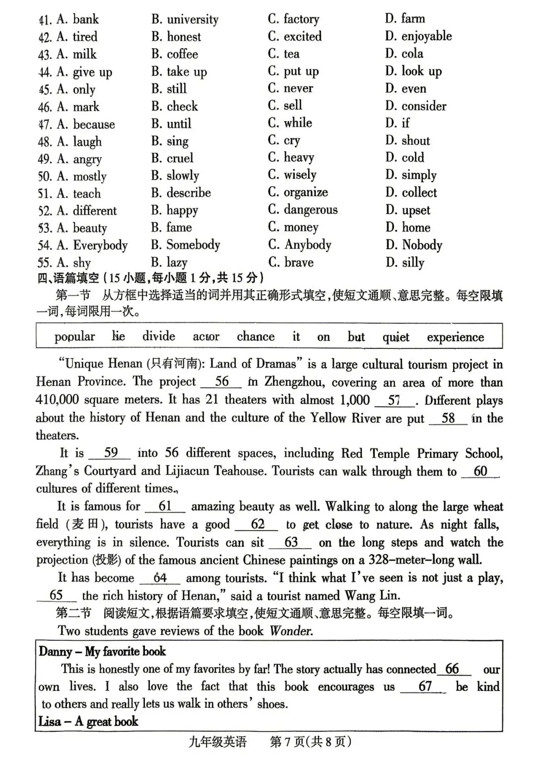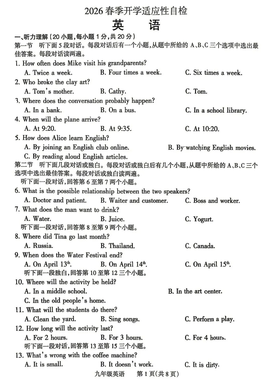 >2026年焦作市中考一模英语试卷及答案(文末可下载)