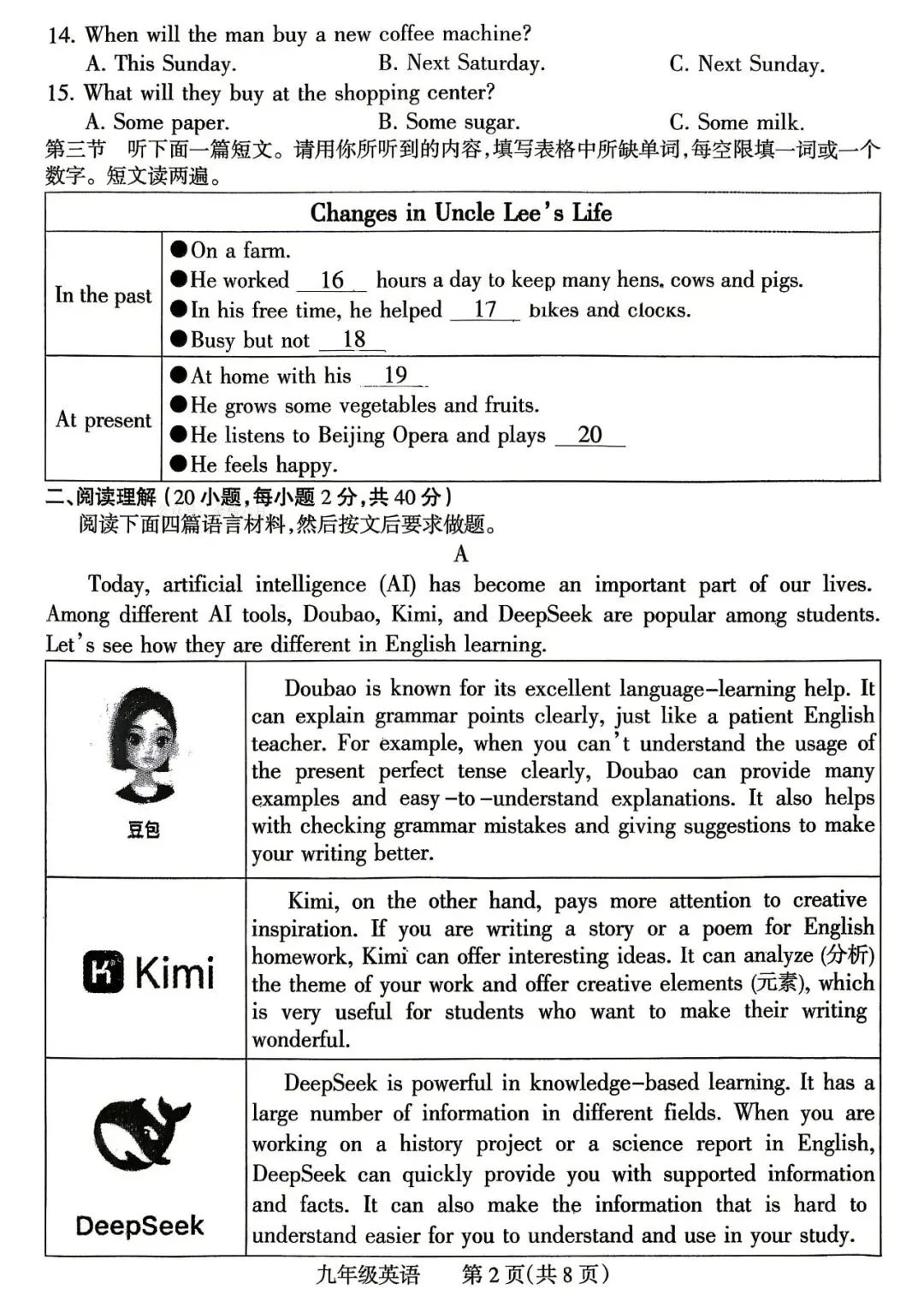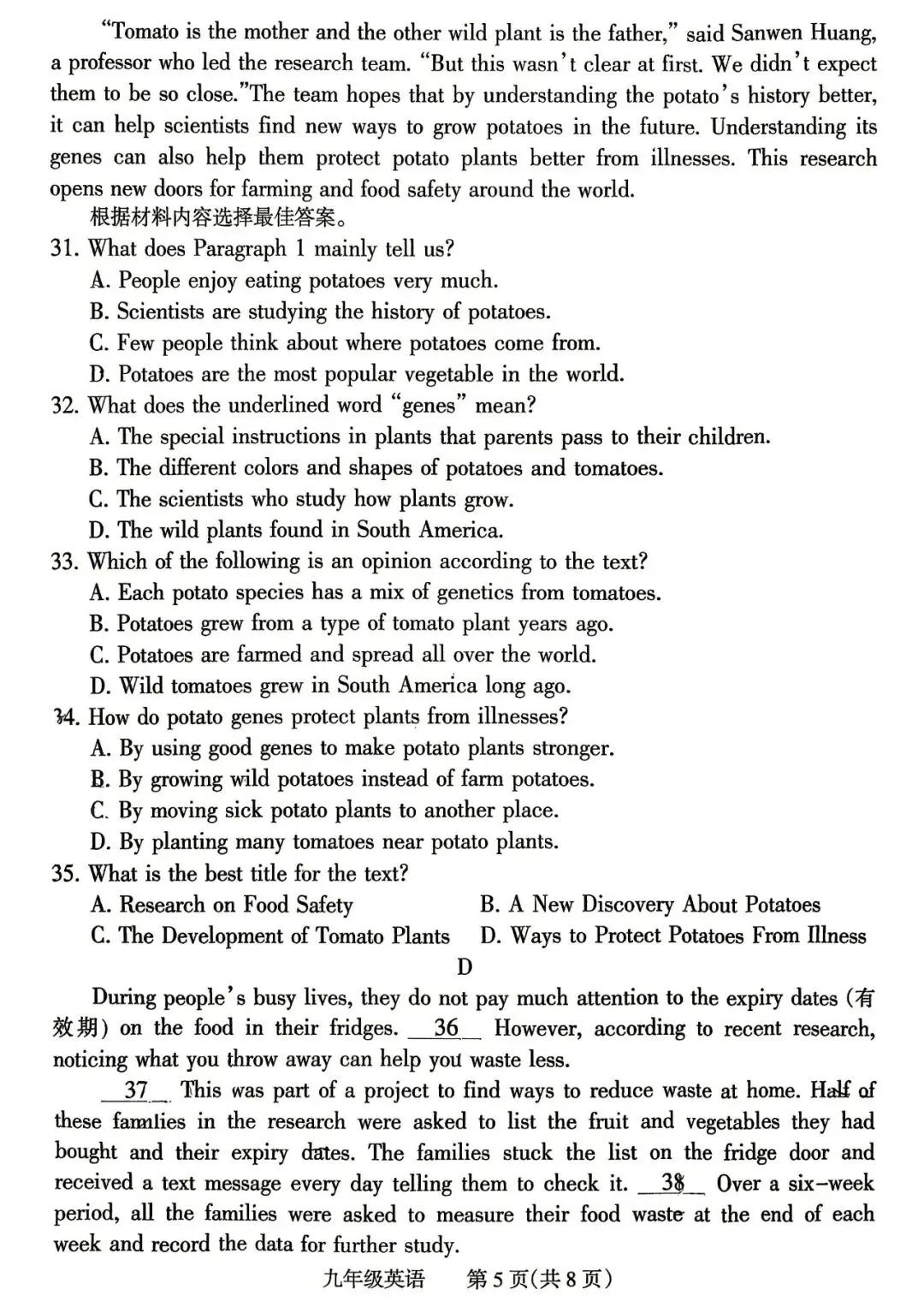 中考英语试卷2025-陕西中考英语试卷(无水印PDF打印版)(合集)