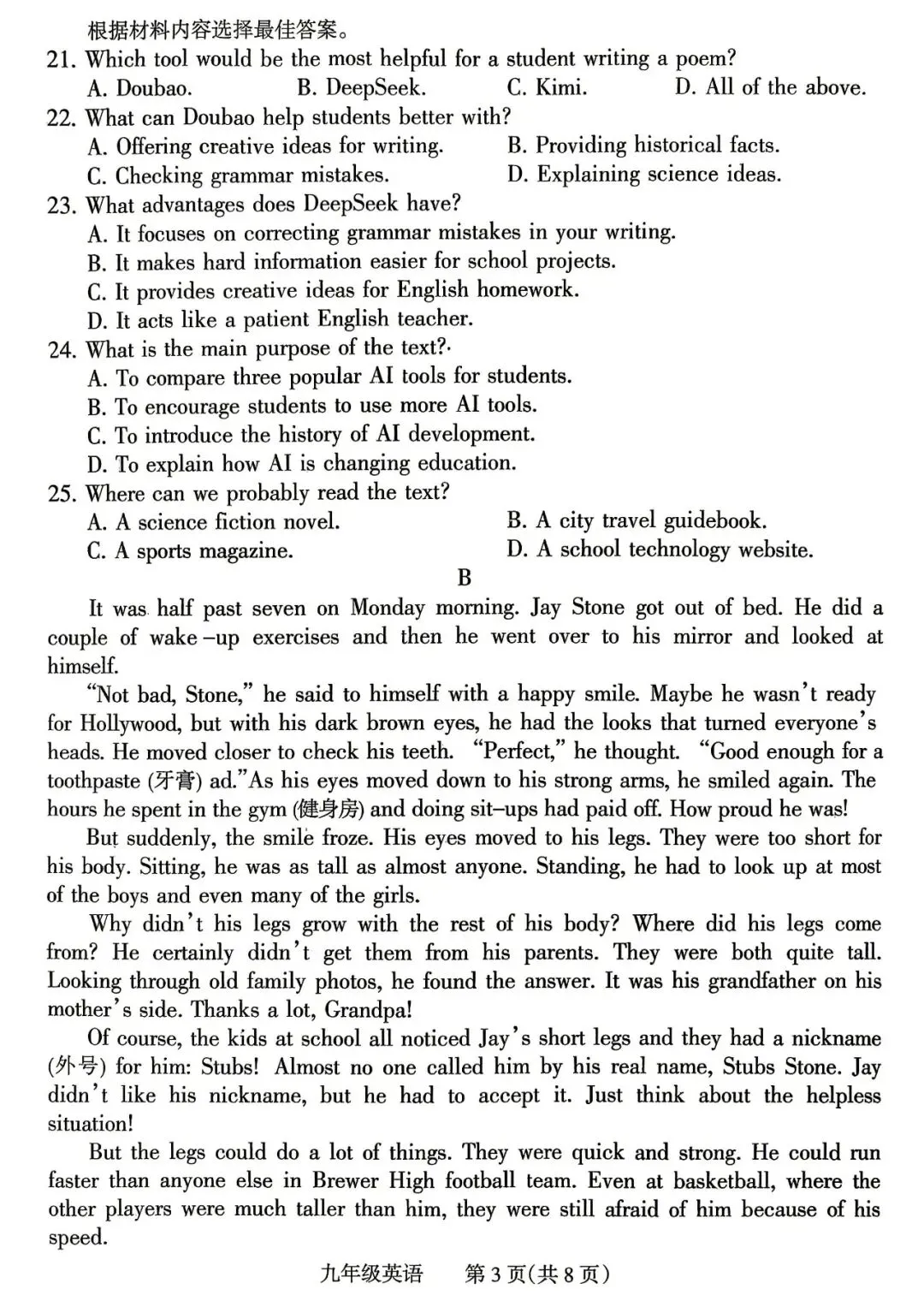 衡阳初三一模试卷分享!25年衡阳初三一模考试卷免费领