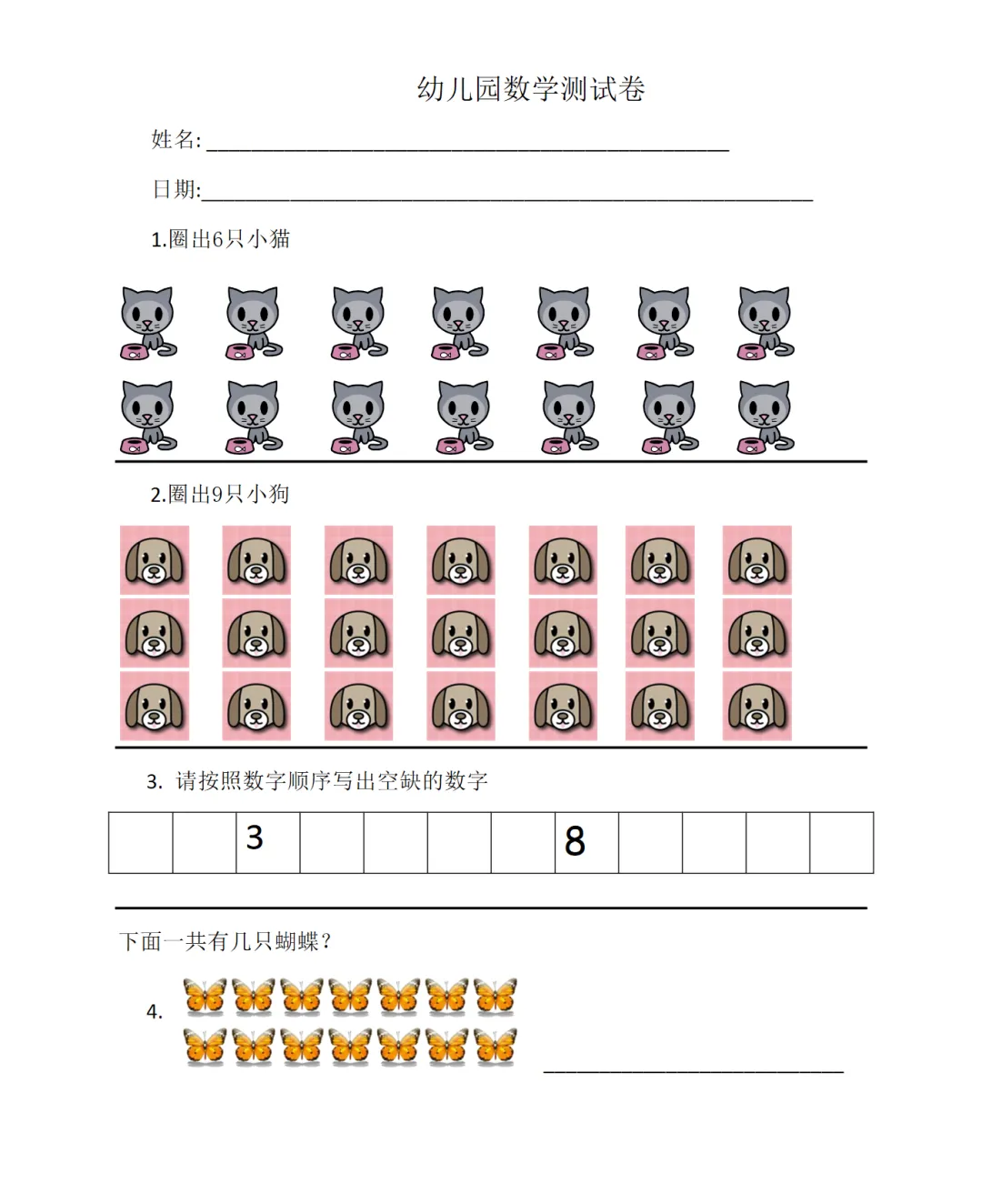 幼小衔接数学 幼儿园数学测试卷