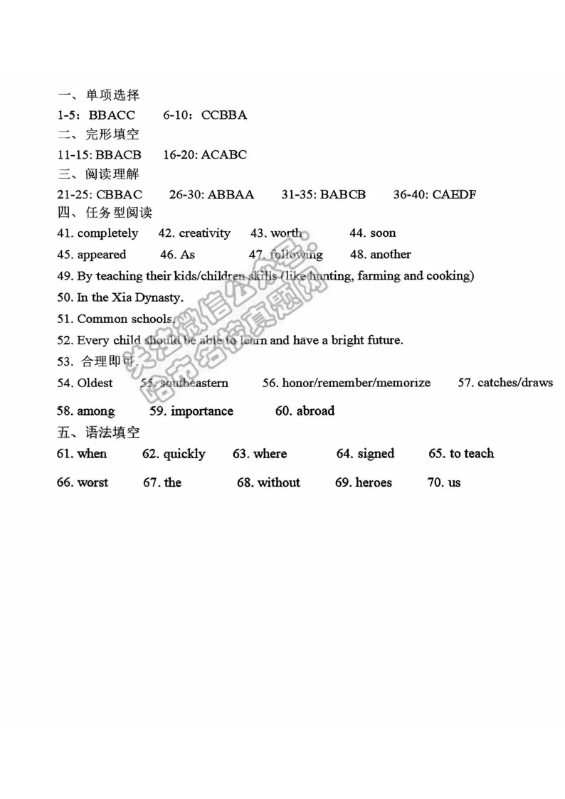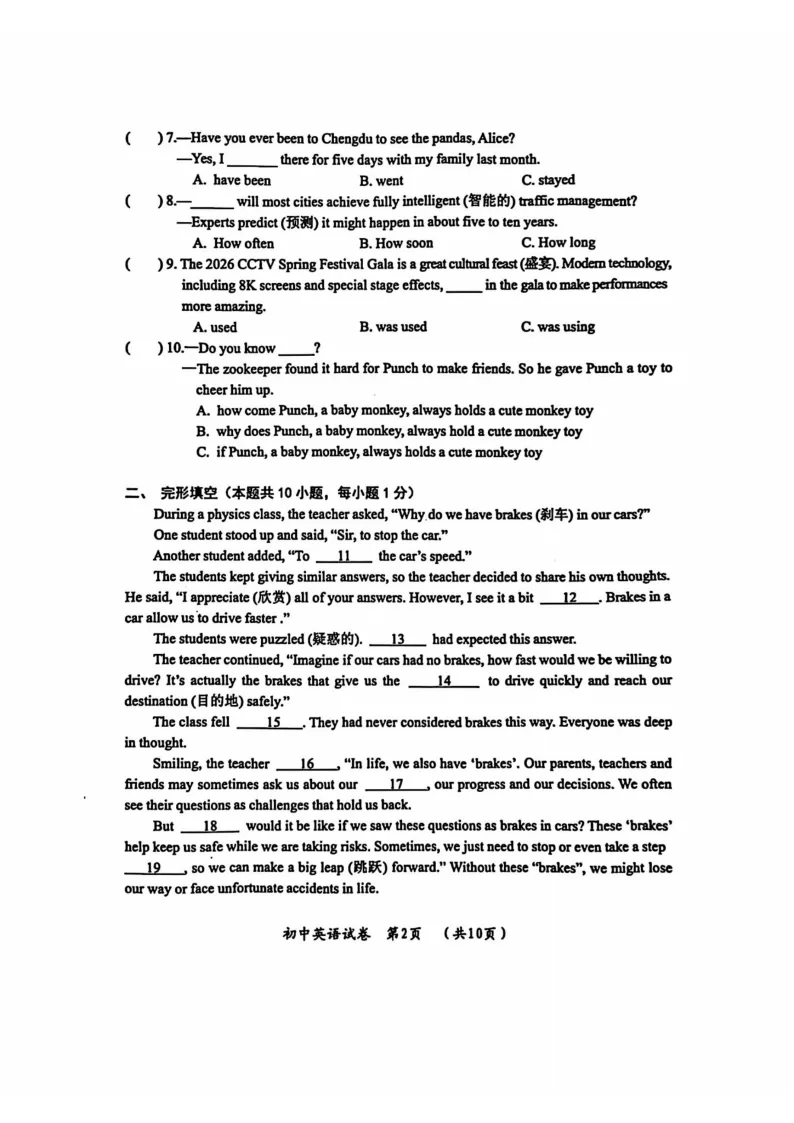 >2026哈尔滨香坊区九年级下英语一模 试卷+答案