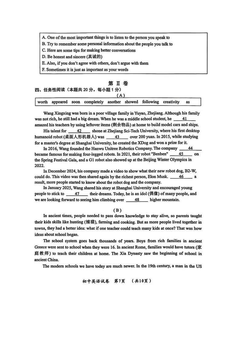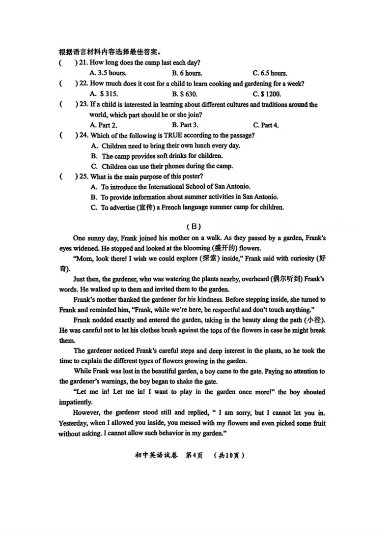 中考英语试卷2025-江苏苏州中考英语试卷(无水印PDF打印版)(合集)