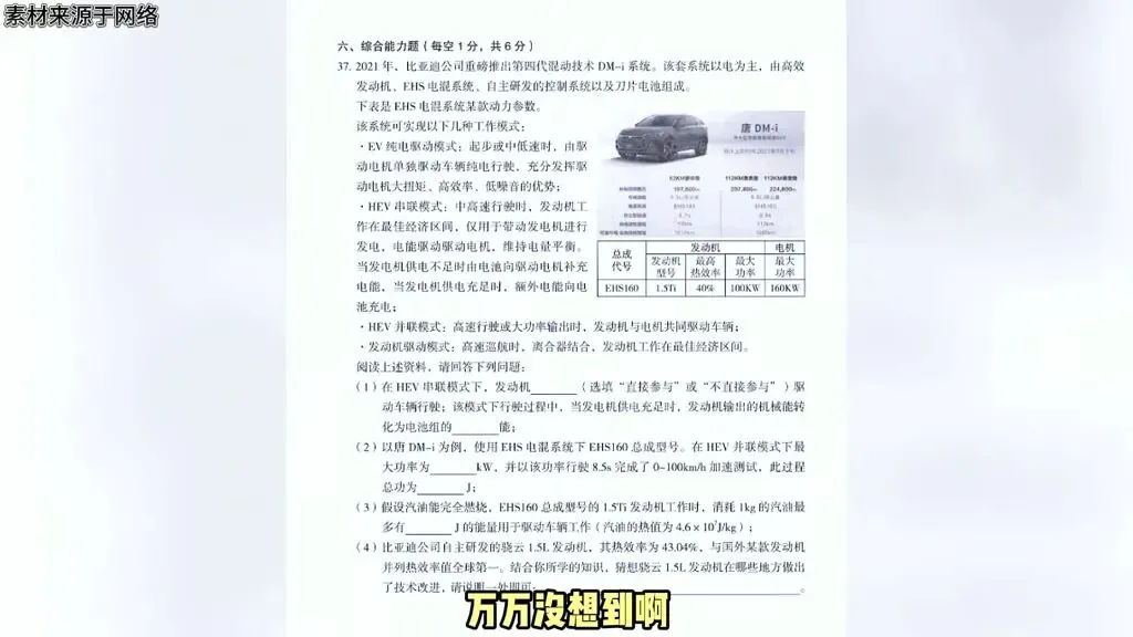 比亚迪汽车技术出现在试卷上,技术实力获认可。