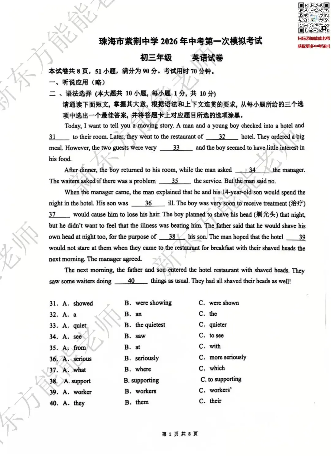 珠海中考一模已陆续考完!难度如何?题型有哪些新变化?