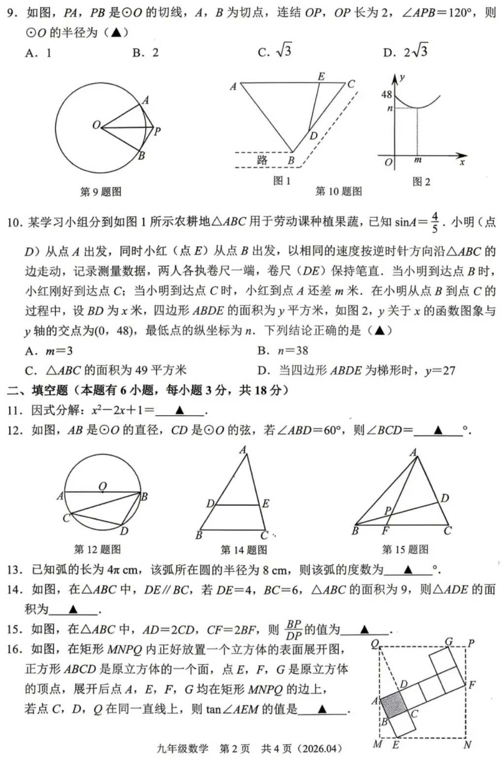 >【2026.4浙江中考模拟数学试卷】杭绍精准精准联盟中考模拟数学(2026.4)