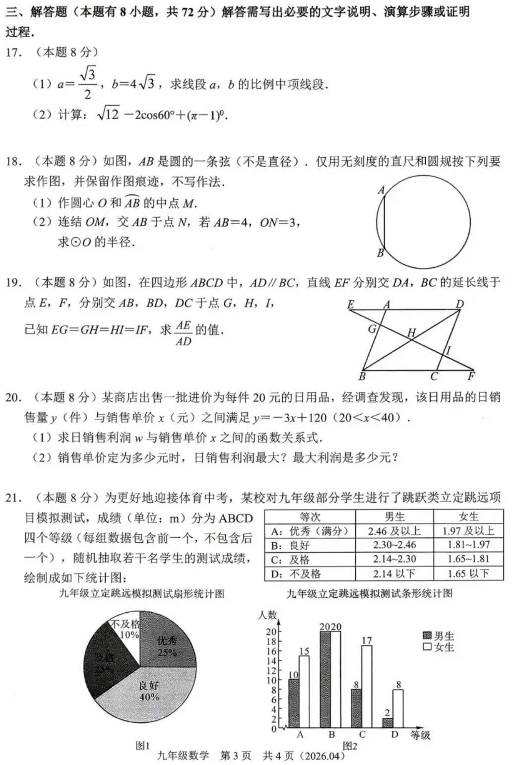 【2026.4浙江中考模拟数学试卷】2026年舟山市中考一模数学试卷(2026.4.15市统考)