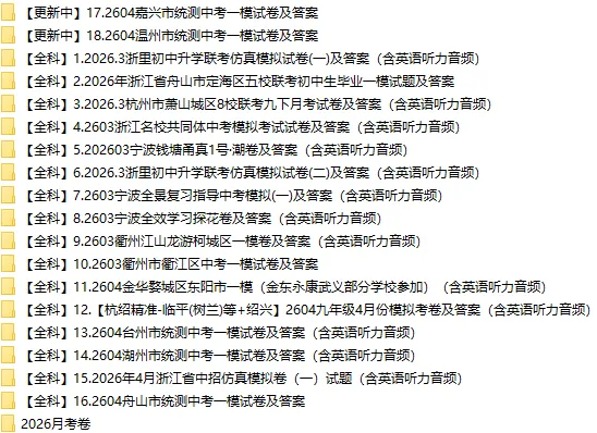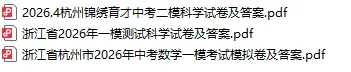 杭州各区一模、二模试卷(答案在公众号中找) (以下文章由中小学教育教学资源整理,未经允许不得转载) 2026年一模卷: