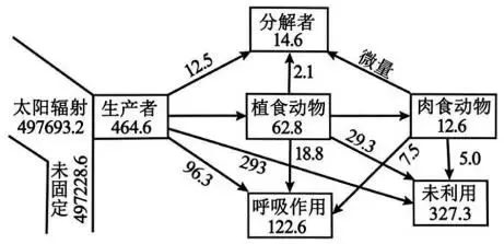 2.下图为美国生态学家林德曼对赛达伯格湖能量流动的分析图解(图中数字为能量数值,单位 是 J-c mr2. a), 下列关于该湖泊的叙述正确的是 ()