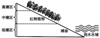 A.红树植物在中潮区是优势种,对该区内部环境有决定性作用 B.潮间带不同区域内植物的分布主要体现了群落的水平结构