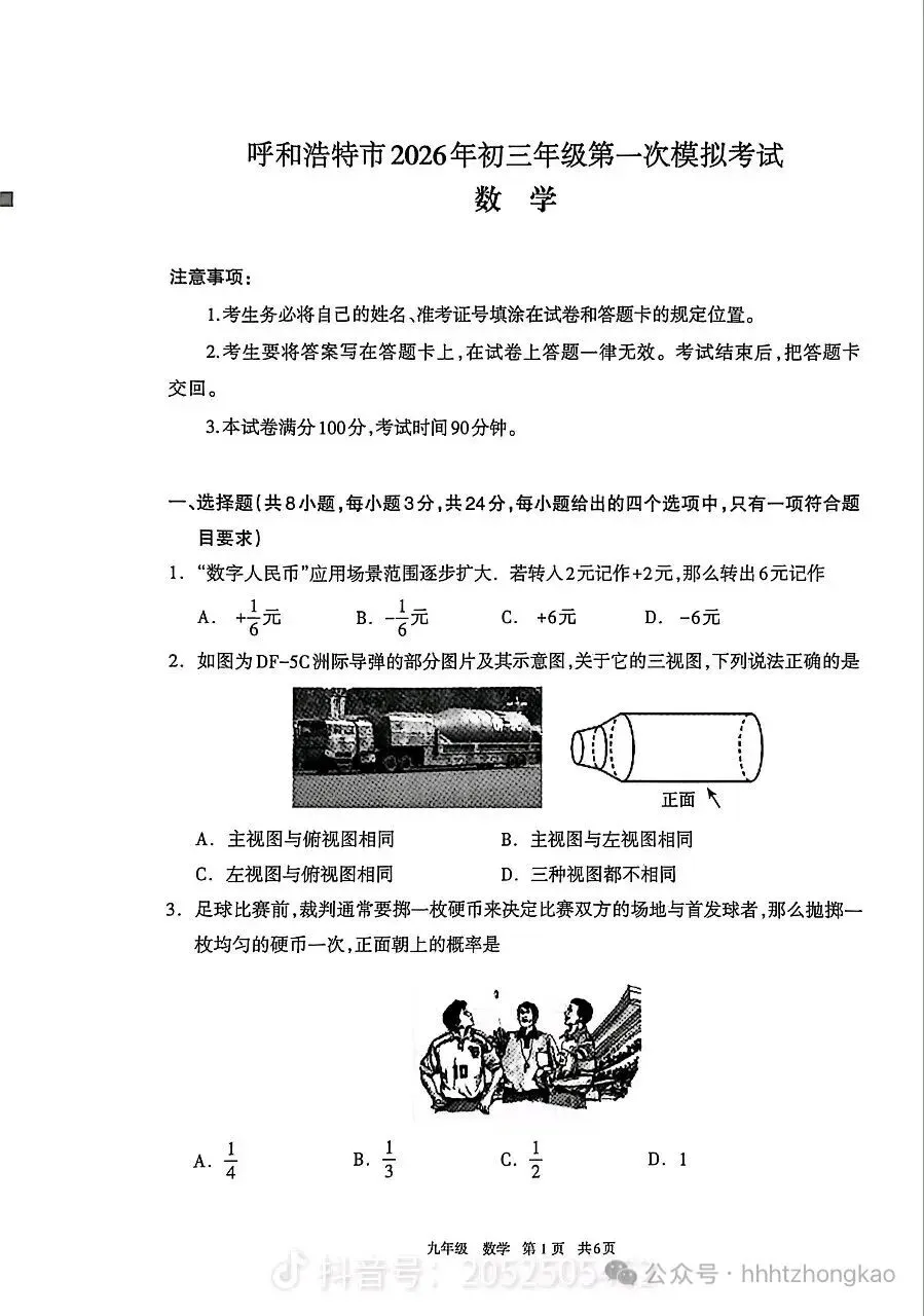 >2026年初三一模数学试卷