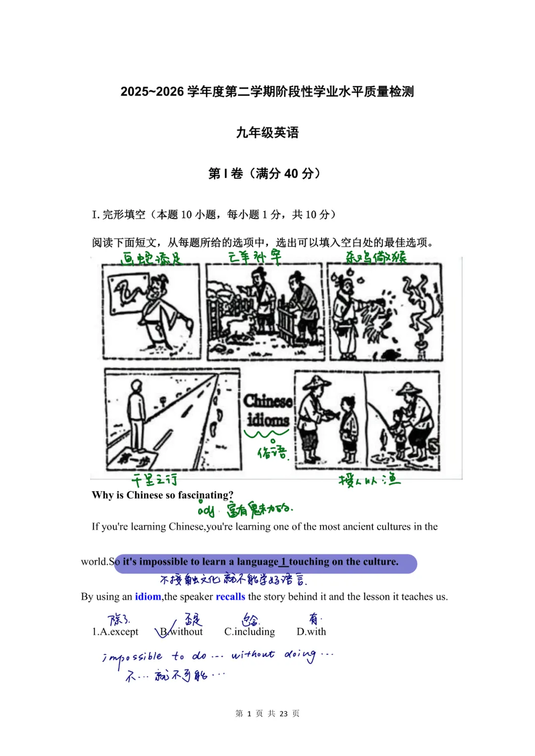 【试卷解析】2026年青岛初中市南一模英语试卷解析