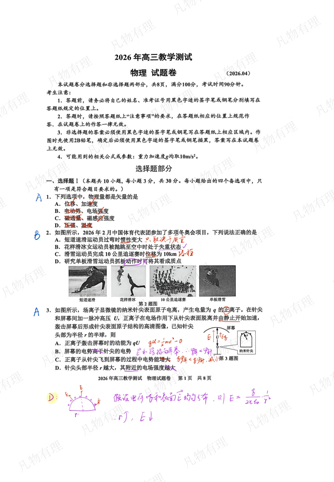 2026届上海市杨浦区高三二模物理试卷(含答案)
