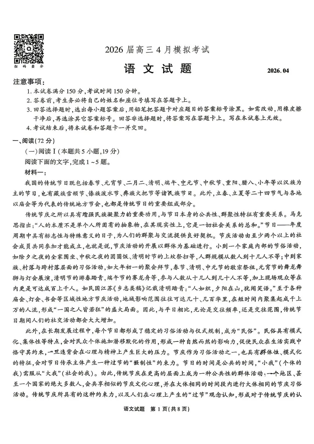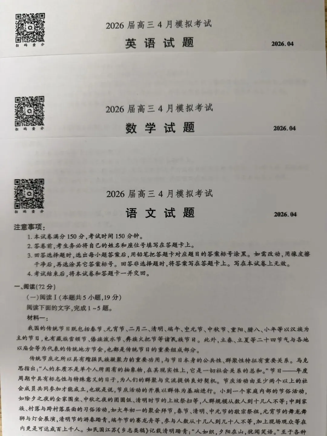 考试名称:安徽省江淮十校2026届高三4月模拟考试/安庆省示范高中高三4月联考