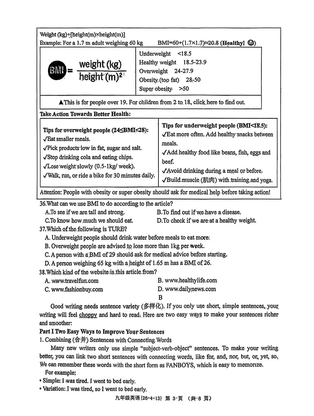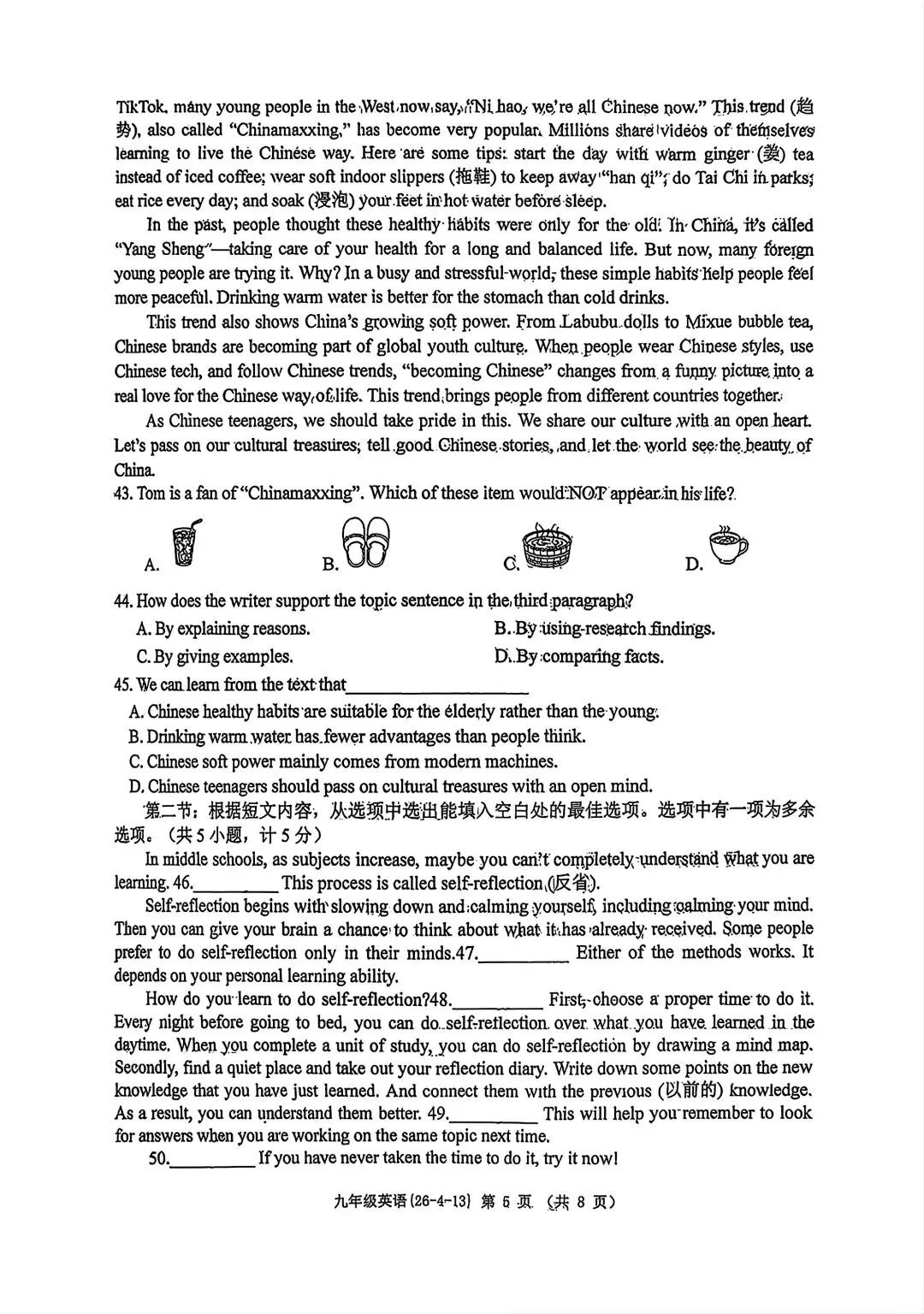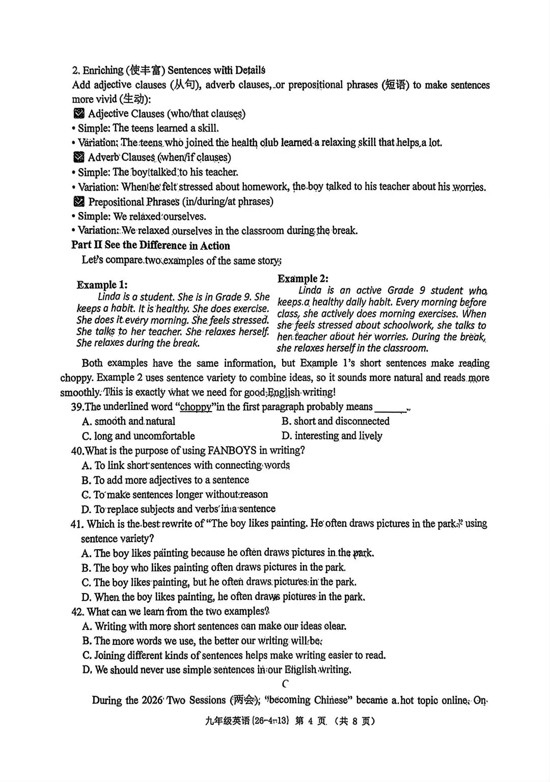 2026届T8第二次联考英语试卷及答案详解