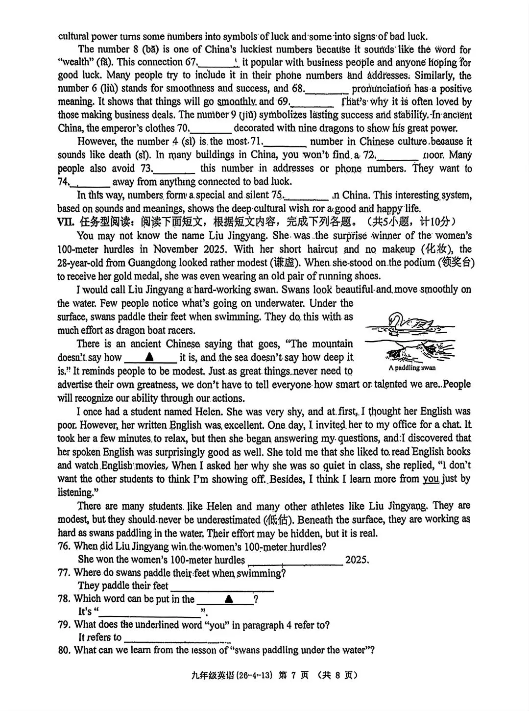 26工附八下英语4月月考试卷(含答案)完整版高清无水印
