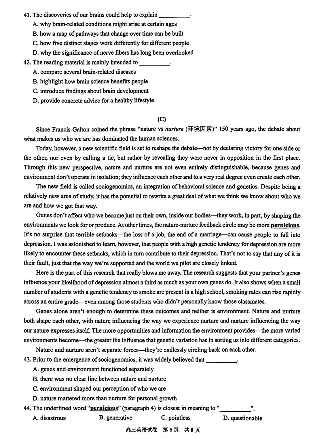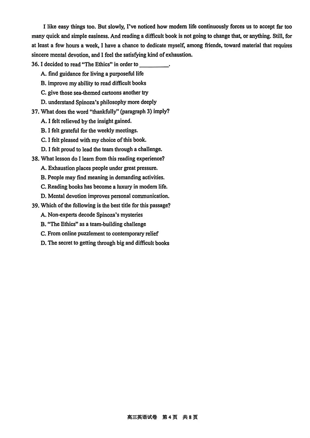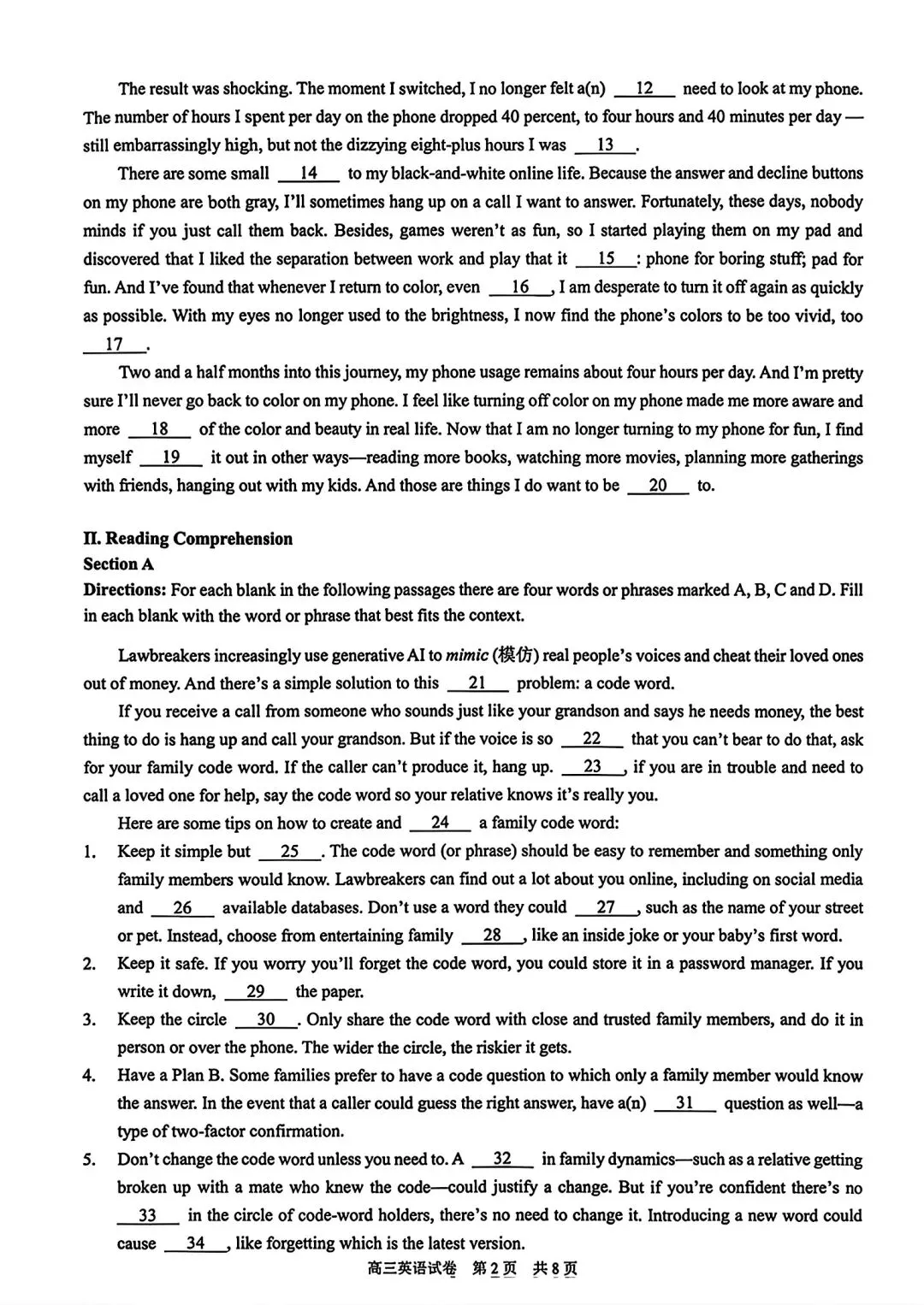 2026届T8第二次联考英语试卷及答案详解
