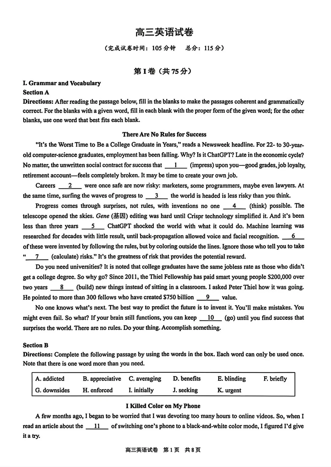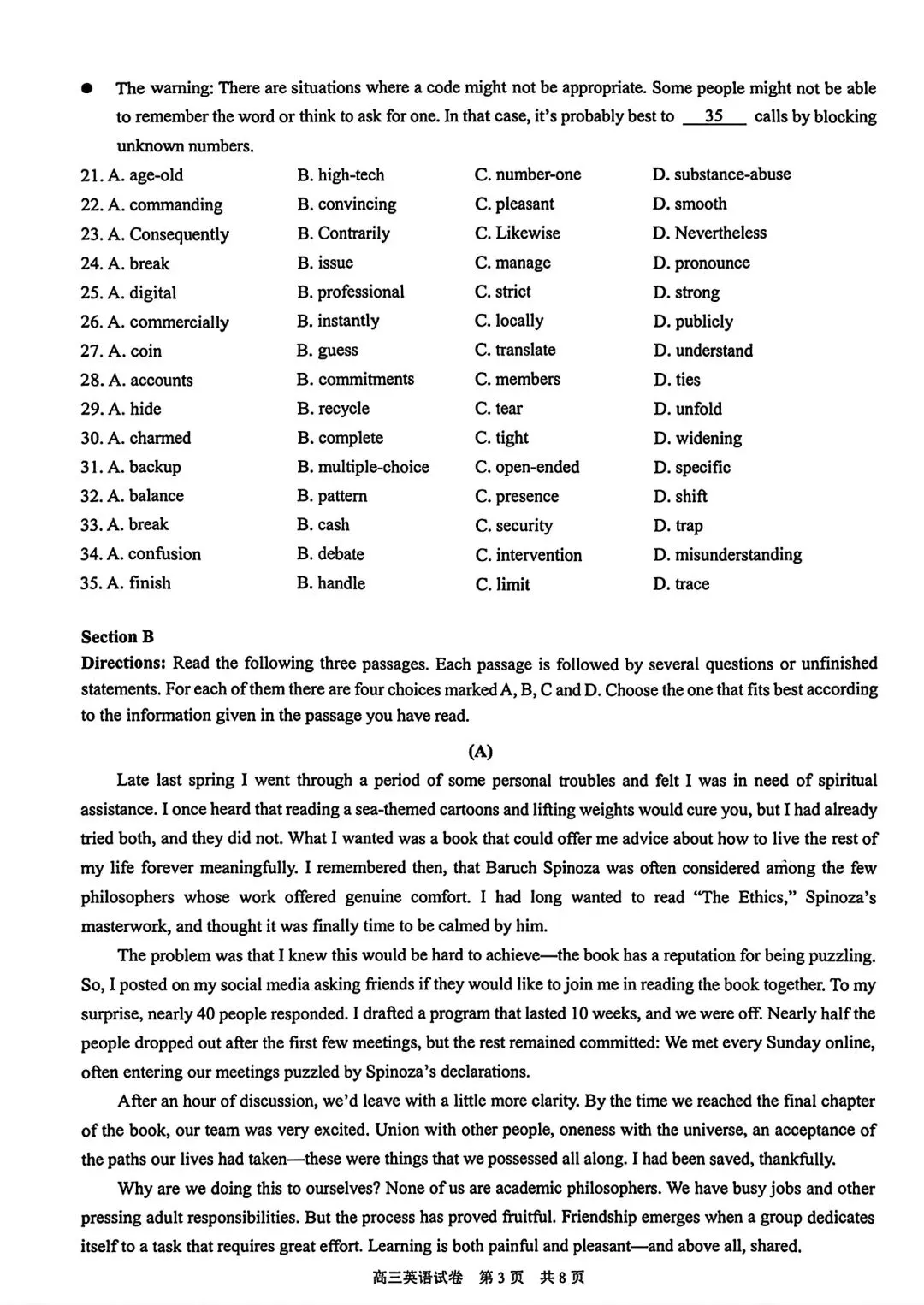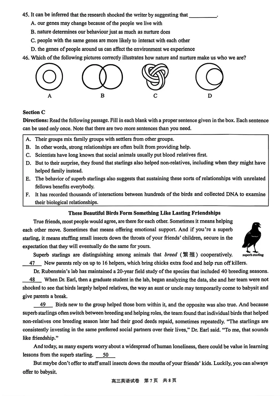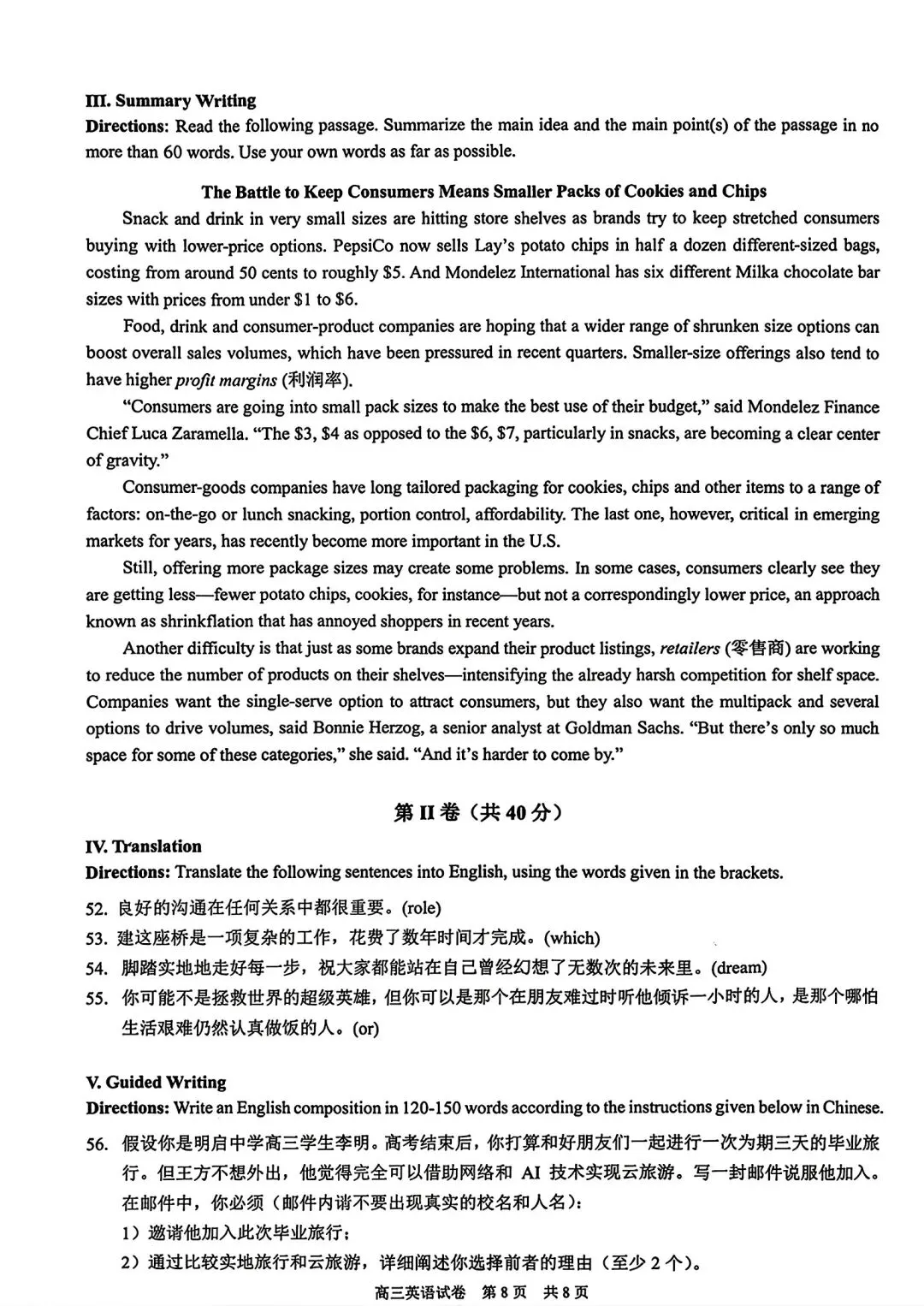 2026届T8第二次联考英语试卷及答案详解